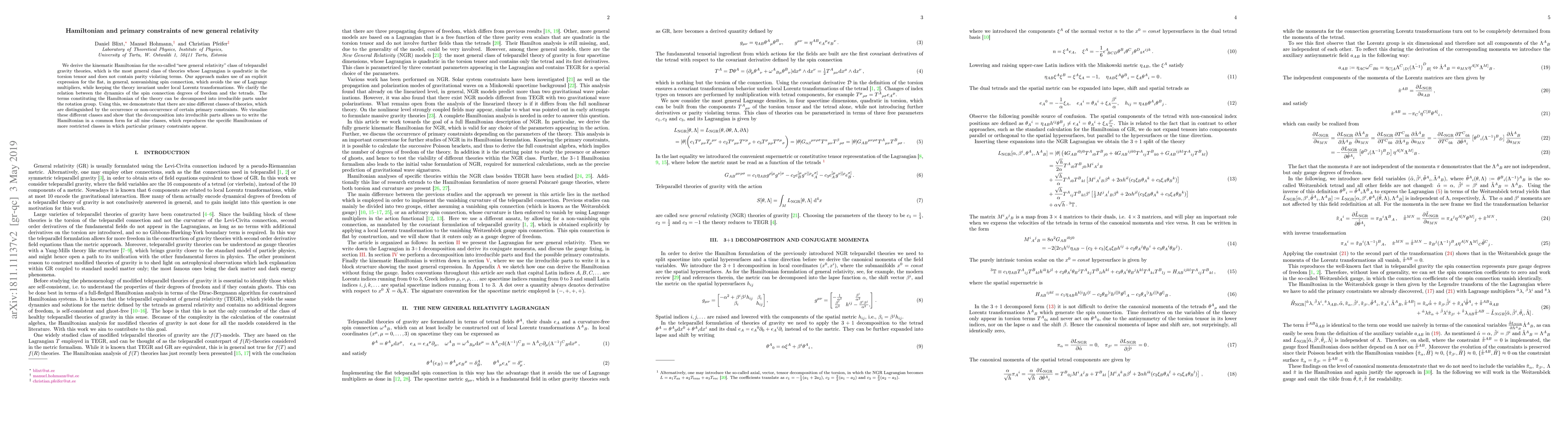 We derive the kinematic Hamiltonian for the so-called "new general relativity" class of teleparallel gravity theories, which is the most general class of theories whose Lagrangian is quadratic in the torsion tensor and does not contain parity violating terms. Our approach makes use of an explicit expression for the flat, in general, nonvanishing spin connection, which avoids the use of Lagrange multipliers, while keeping the theory invariant under local Lorentz transformations. We clarify the relation between the dynamics of the spin connection degrees of freedom and the tetrads. The terms constituting the Hamiltonian of the theory can be decomposed into irreducible parts under the rotation group. Using this, we demonstrate that there are nine different classes of theories, which are distinguished by the occurrence or non-occurrence of certain primary constraints. We visualize these different classes and show that the decomposition into irreducible parts allows us to write the Hamiltonian in a common form for all nine classes, which reproduces the specific Hamiltonians of more restricted classes in which particular primary constraints appear.