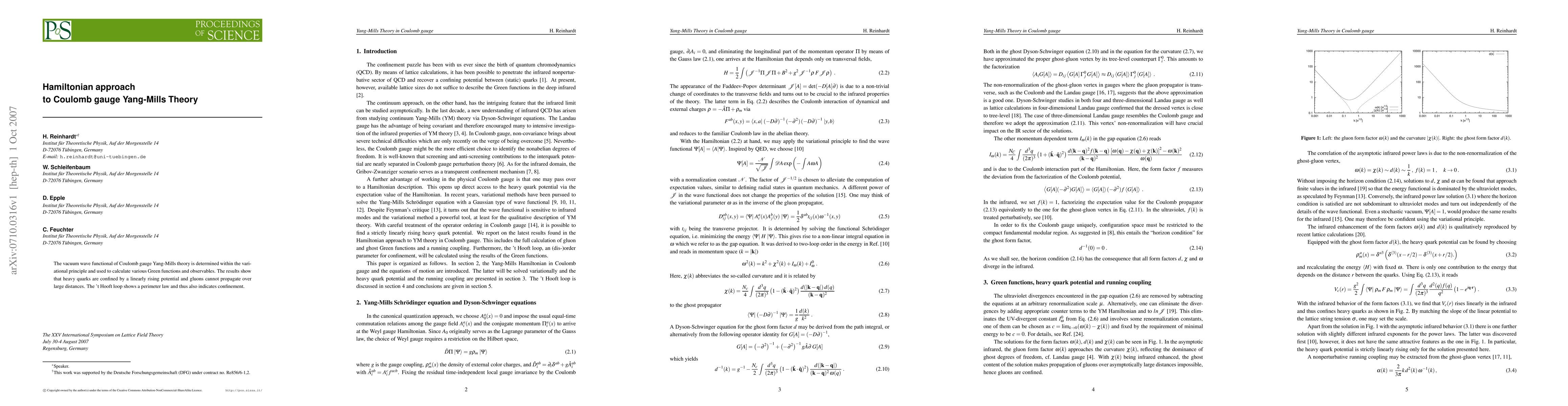 This paper determines the vacuum wave functional for Coulomb gauge Yang-Mills theory using the variational principle, demonstrating confinement of heavy quarks via a linearly rising potential and indicating gluons' inability to propagate over long distances, with the 't Hooft loop supporting confinement via a perimeter law.