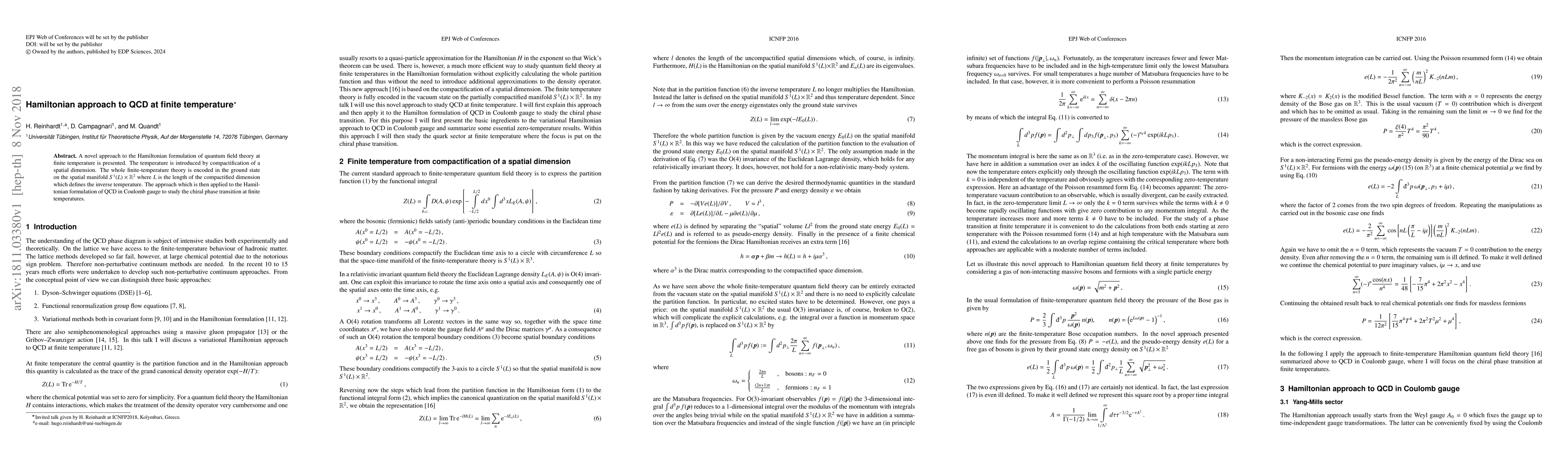 A novel approach to the Hamiltonian formulation of quantum field theory at finite temperature is presented. The temperature is introduced by compactification of a spatial dimension. The whole finite-temperature theory is encoded in the ground state on the spatial manifold $S^1 (L) \times \mathbb{R}^2$ where $L$ is the length of the compactified dimension which defines the inverse temperature. The approach which is then applied to the Hamiltonian formulation of QCD in Coulomb gauge to study the chiral phase transition at finite temperatures.