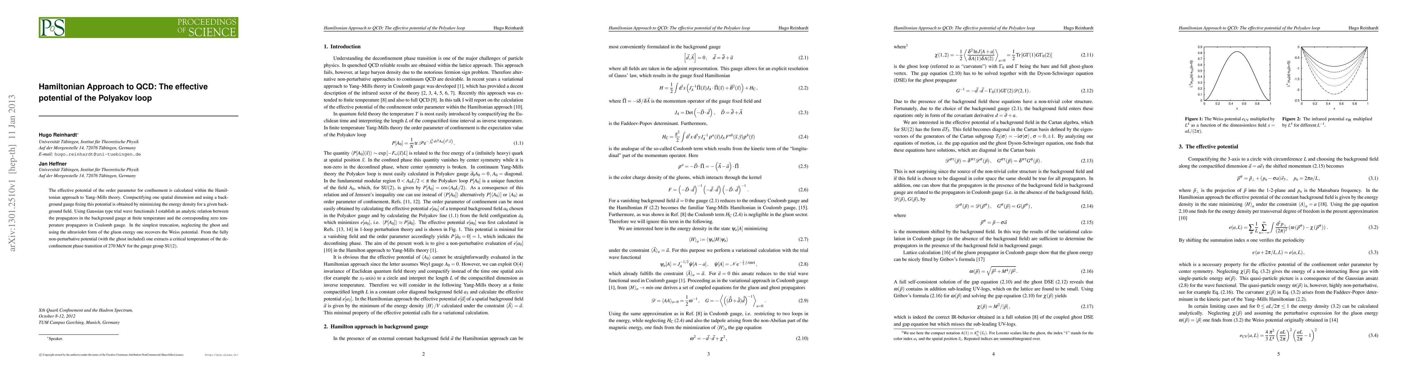 Researchers calculated the effective potential for confinement in Quantum Chromodynamics (QCD) using a Hamiltonian approach, finding a critical temperature of 270 MeV for deconfinement phase transition.