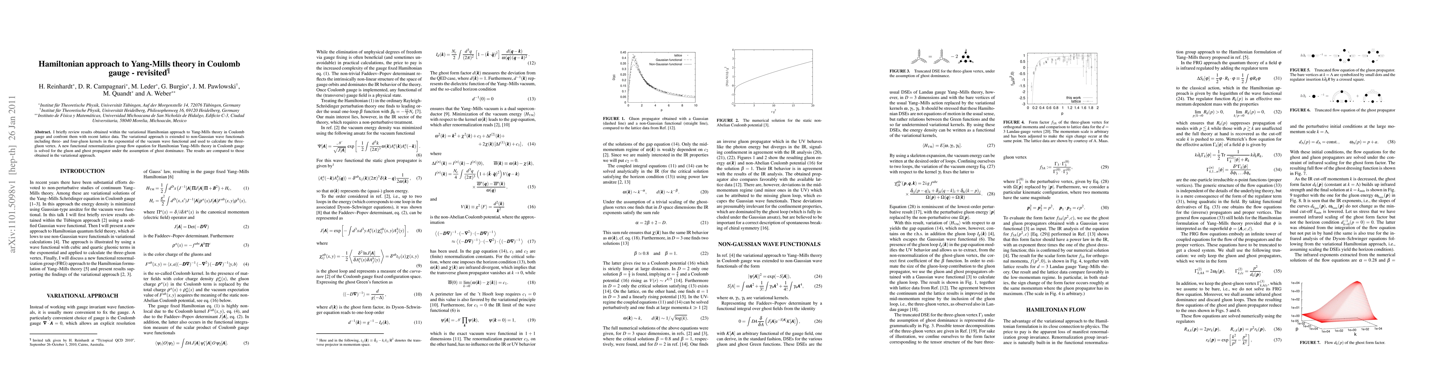 The paper revisits the Hamiltonian approach to Yang-Mills theory in Coulomb gauge, extending the variational approach to non-Gaussian wave functionals and solving a new functional renormalization group flow equation for gluon and ghost propagators, with results compared to lattice data.