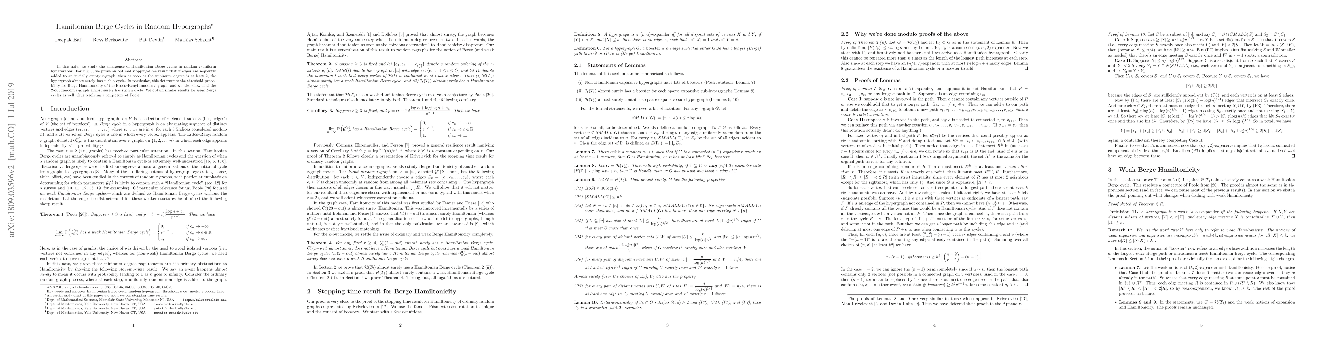Researchers prove that in random hypergraphs with at least 3 edges, a Hamiltonian Berge cycle almost surely emerges once the minimum degree is 2, resolving a conjecture about weak Berge cycles.