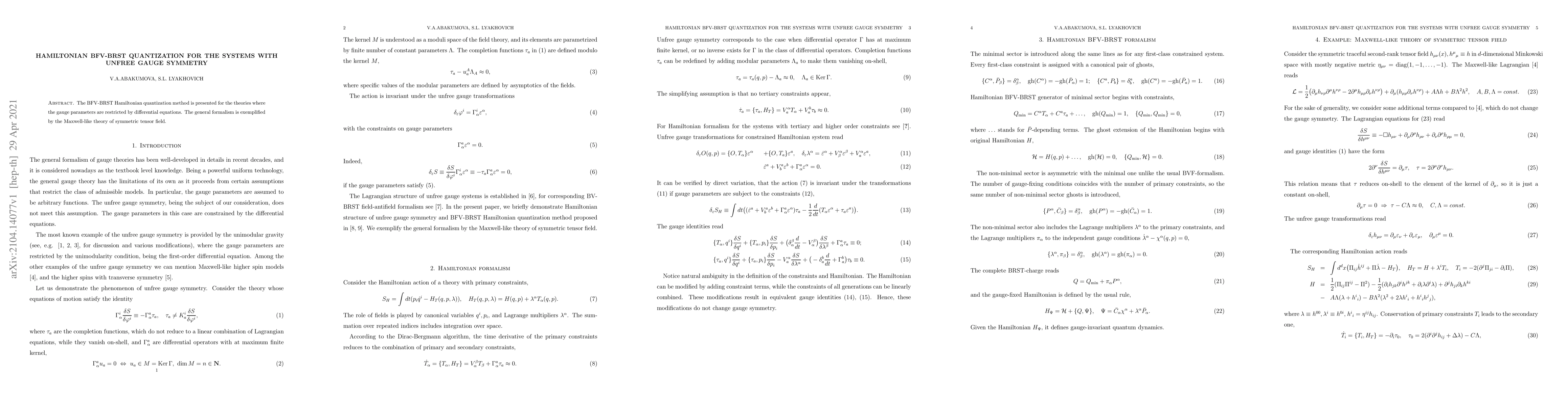 This paper introduces the BFV-BRST Hamiltonian quantization for systems with gauge symmetries constrained by differential equations, applying the method to a Maxwell-like symmetric tensor field theory. The approach provides a framework for quantizing such gauge systems.