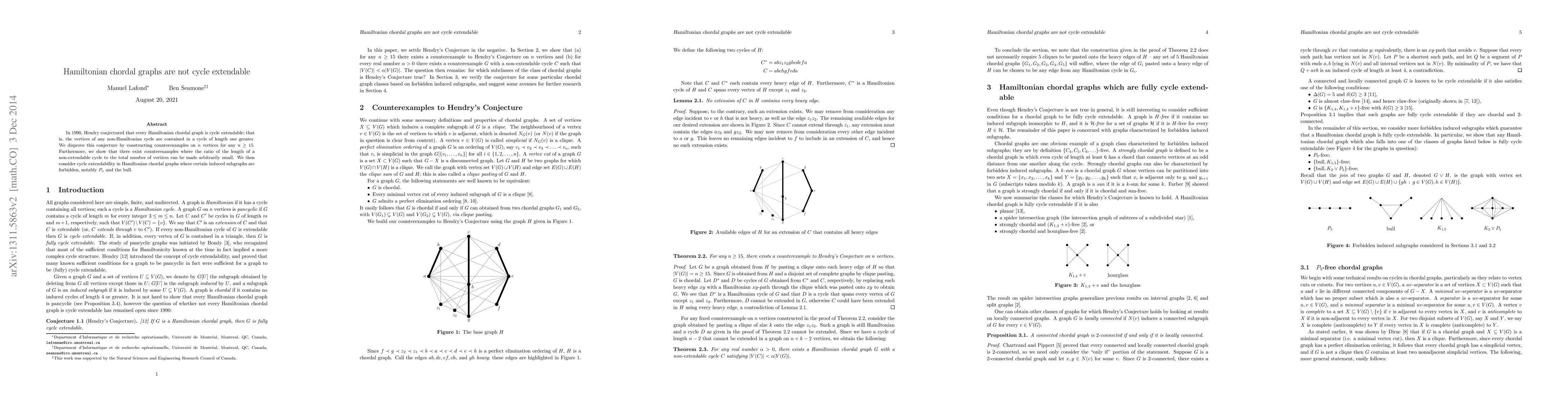 In 1990, Hendry conjectured that every Hamiltonian chordal graph is cycle extendible; that is, the vertices of any non-Hamiltonian cycle are contained in a cycle of length one greater. We disprove this conjecture by constructing counterexamples on $n$ vertices for any $n \geq 15$. Furthermore, we show that there exist counterexamples where the ratio of the length of a non-extendible cycle to the total number of vertices can be made arbitrarily small. We then consider cycle extendibility in Hamiltonian chordal graphs where certain induced subgraphs are forbidden, notably $P_n$ and the bull.