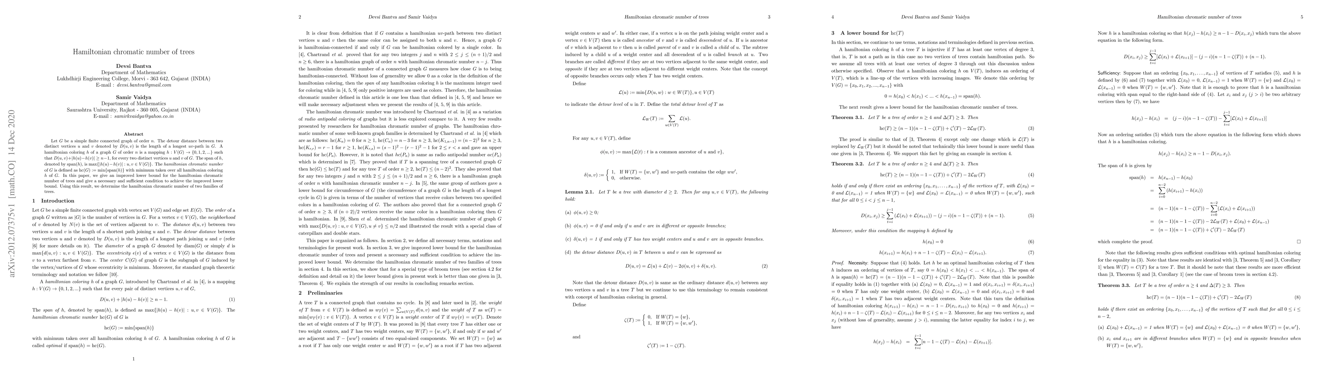 This paper presents an improved lower bound for the hamiltonian chromatic number of trees and provides a necessary and sufficient condition for achieving this bound. It also determines the hamiltonian chromatic number for specific families of trees.