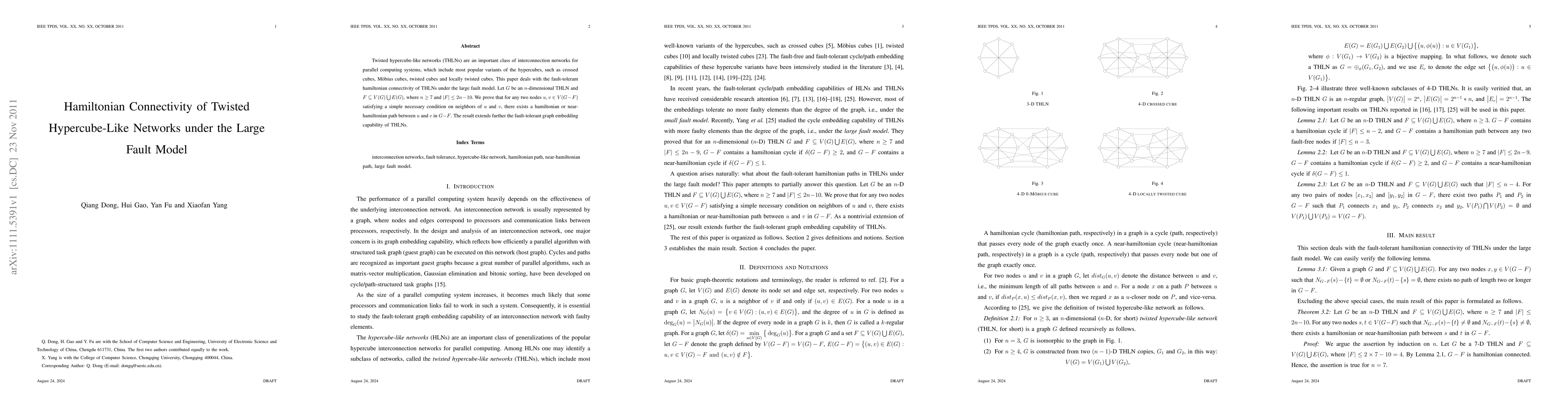 This paper proves that twisted hypercube-like networks (THLNs) maintain hamiltonian connectivity even under significant faults, with up to 2n-10 node or edge failures for n>=7. This extends their fault-tolerant graph embedding capabilities, ensuring reliable parallel computing.