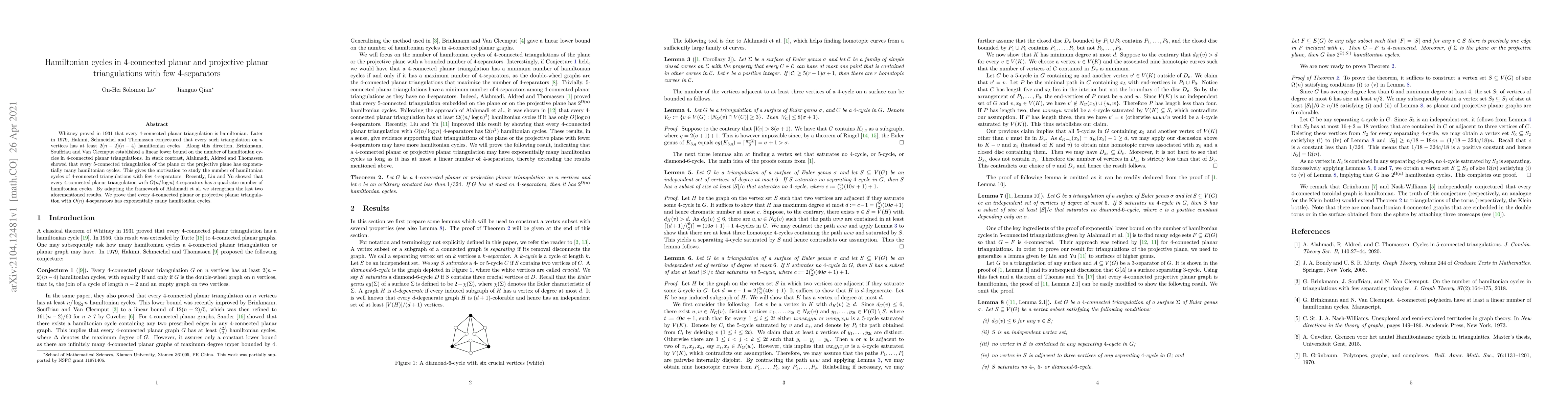 This paper explores Hamiltonian cycles in 4-connected planar and projective planar triangulations with few 4-separators, proving that such triangulations with $O(n)$ 4-separators have exponentially many Hamiltonian cycles, strengthening prior results on their cycle counts.