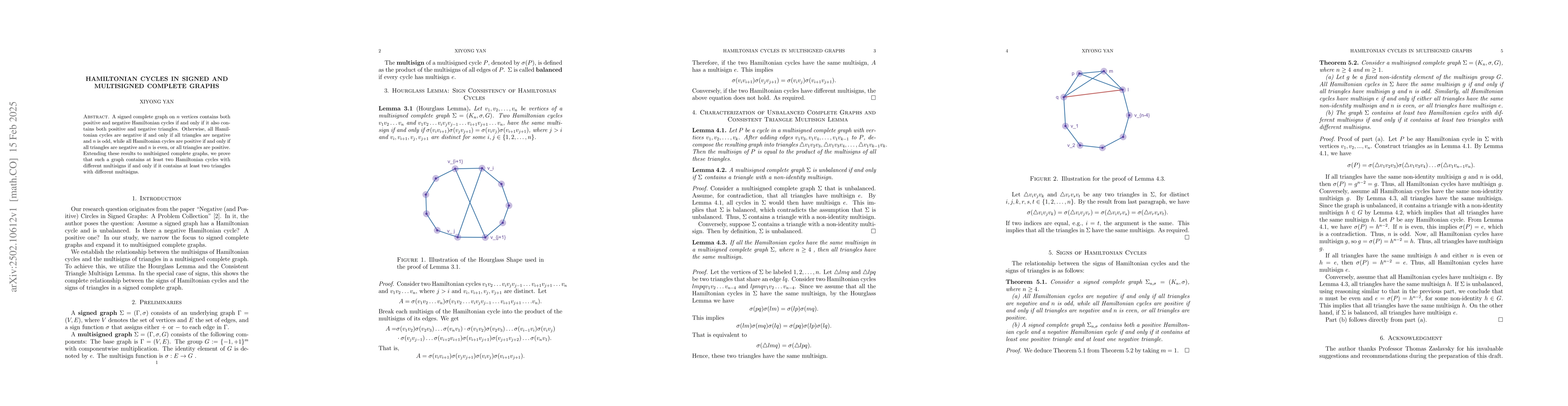 The paper establishes a connection between the existence of Hamiltonian cycles with different multisigns in signed and multisigned complete graphs and the presence of triangles with different multisigns, providing a characterization lemma and proof techniques.