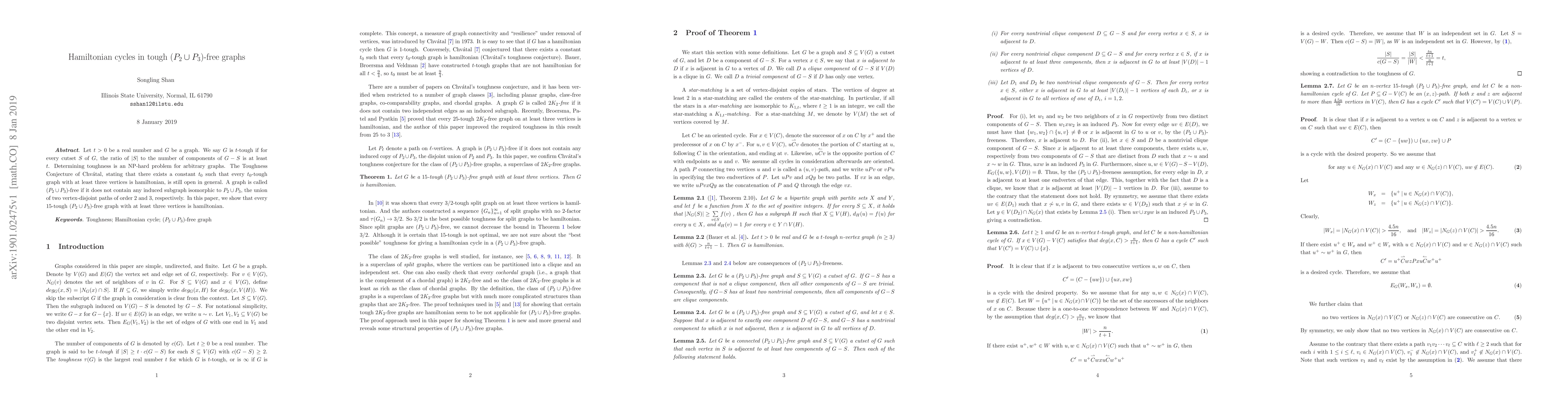 This paper proves that 15-tough graphs without a specific forbidden subgraph pattern are Hamiltonian, providing insight into graph toughness and its relation to graph Hamiltonicity.