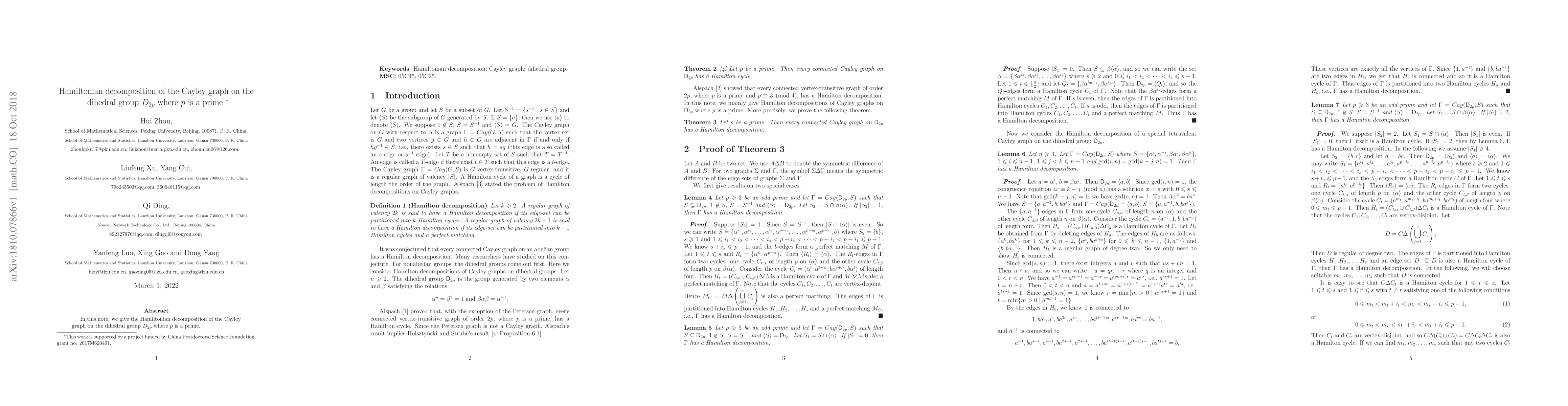 Summary: This paper presents a Hamiltonian decomposition for the Cayley graph on the dihedral group $D_{2p}$, where $p$ is a prime number, providing a detailed structure of its Hamiltonian cycles.