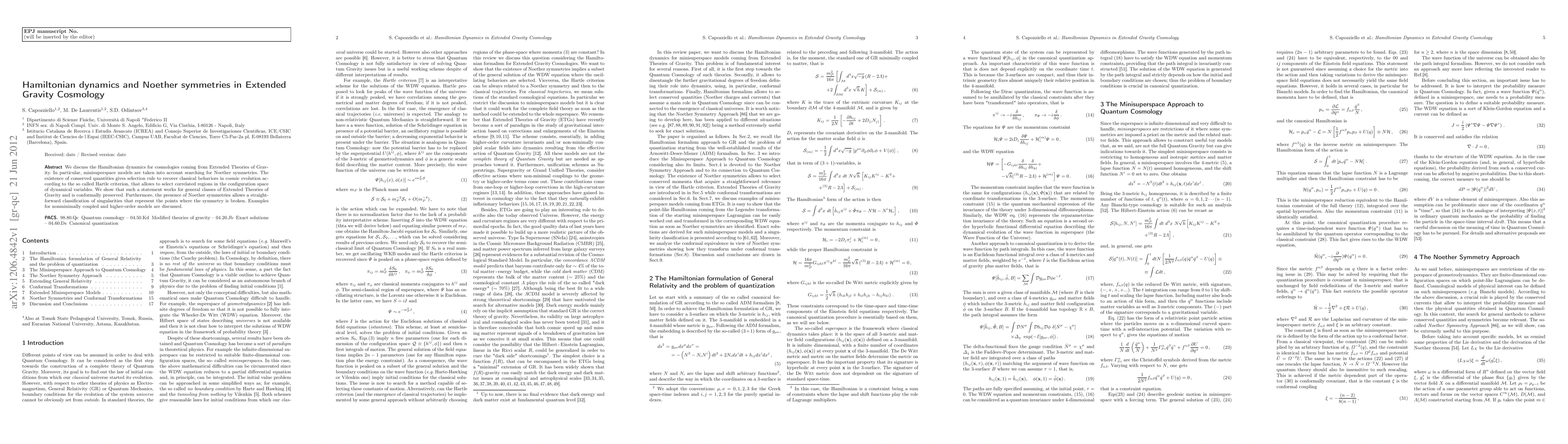 This paper explores Hamiltonian dynamics in Extended Gravity cosmologies and identifies Noether symmetries to uncover conserved quantities, facilitating the selection of classical behaviors in cosmic evolution. It demonstrates the conformal preservation of these symmetries across various Extended Gravity models and classifies singularities where symmetry is broken.