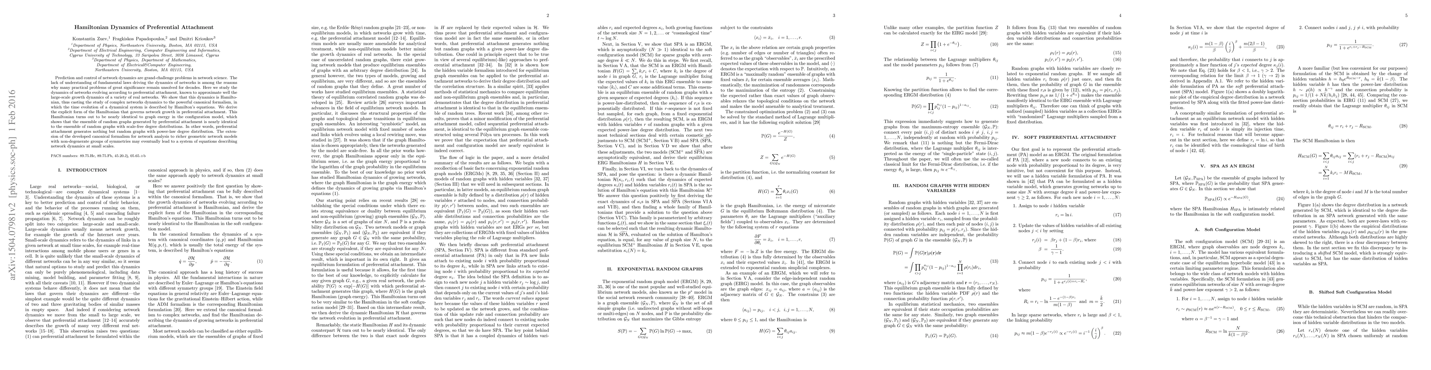 This paper reveals that network dynamics driven by preferential attachment can be described using Hamiltonian mechanics, providing a powerful formalism for understanding and predicting network growth. The derived Hamiltonian closely aligns with graph energy, indicating that preferential attachment generates random graphs with a power-law degree distribution.