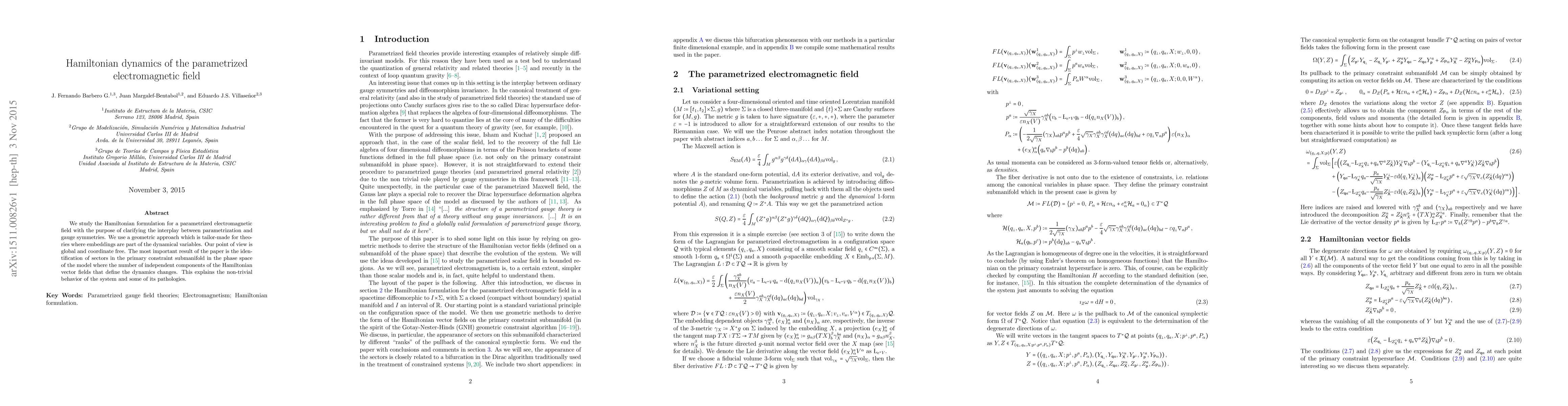 This paper explores the Hamiltonian dynamics of a parametrized electromagnetic field, employing a geometric approach to clarify the relationship between parametrization and gauge symmetries. The key finding is the identification of distinct sectors in the phase space where the number of independent components of the Hamiltonian vector fields varies, explaining the system's non-trivial behavior and pathologies.