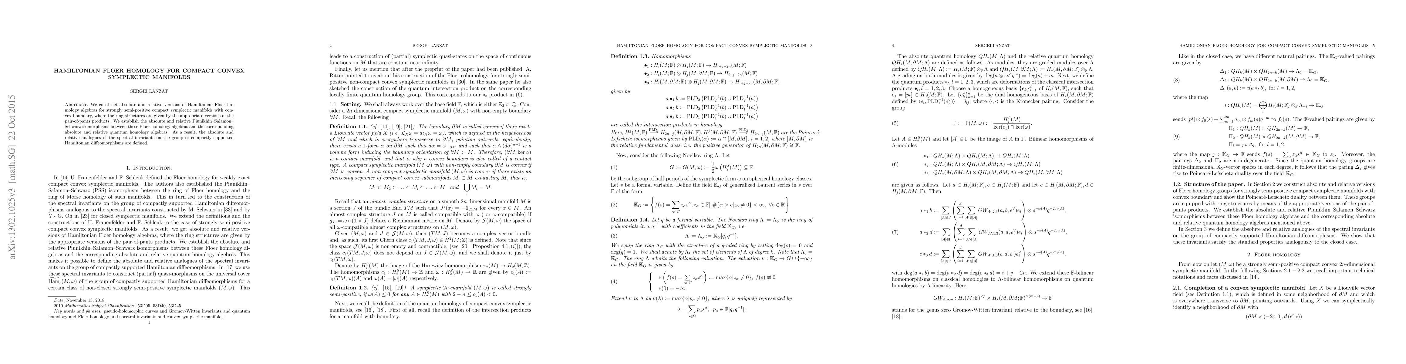 The paper constructs Hamiltonian Floer homology algebras for convex symplectic manifolds and proves isomorphisms linking them to quantum homology, defining spectral invariants for Hamiltonian diffeomorphisms. The focus is on strongly semi-positive manifolds with convex boundaries.