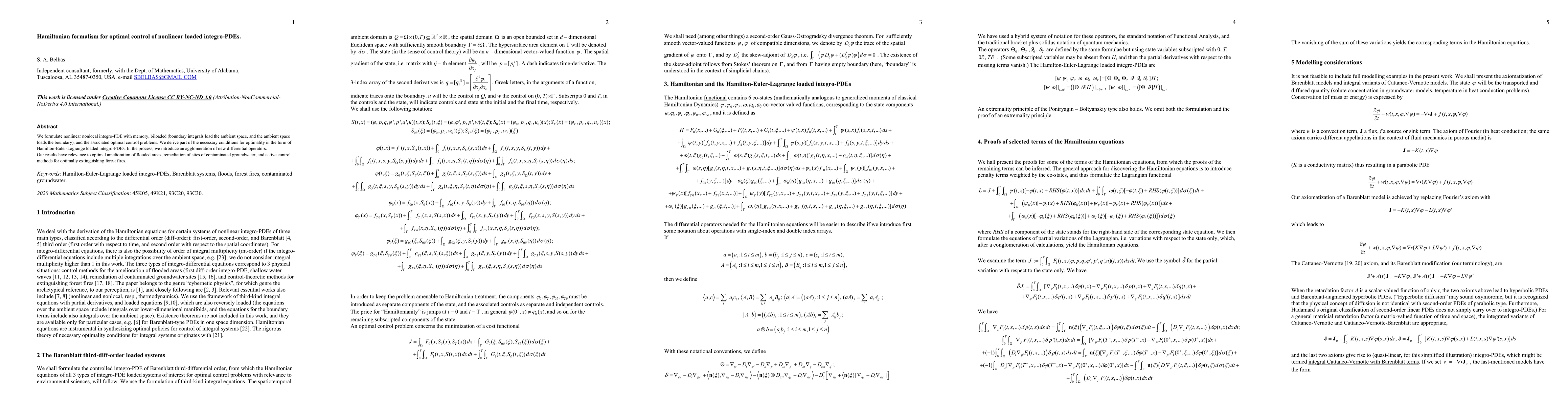 We formulate nonlinear nonlocal integro-PDE with memory, biloaded (boundary integrals load the ambient space, and the ambient space loads the boundary), and the associated optimal control problems. We derive part of the necessary conditions for optimality in the form of Hamilton-Euler-Lagrange loaded integro-PDEs. In the process, we introduce an agglomeration of new differential operators. Our results have relevance to optimal amelioration of flooded areas, remediation of sites of contaminated groundwater, and active control methods for optimally extinguishing forest fires.