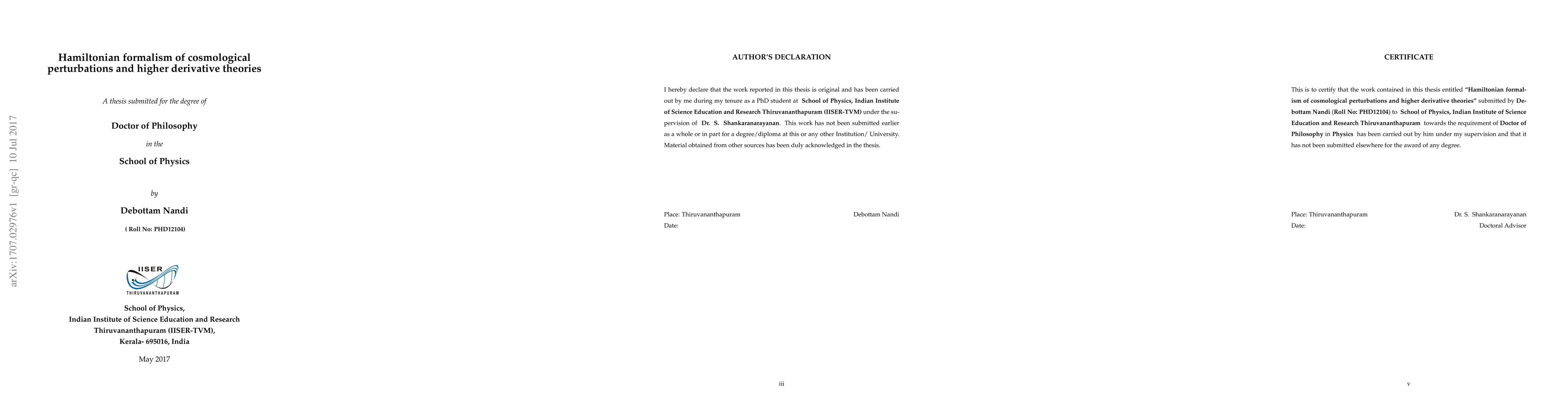 The focus of the thesis is to obtain a universal formalism to evaluate the perturbations during inflation at all orders that can be applied to any theory of gravity and matter source in the early universe. We first look at the equivalence of two approaches --- action and order-by-order gravity equation approach --- for cosmological perturbation theory, and establish that both lead to equivalent results for any gravity models at any order of perturbations. We then focus on Hamiltonian formalism that has not been studied extensively in the literature. We provide a generalized Hamiltonian approach for cosmological perturbations which is equivalent to the Lagrangian approach. We show that, the approach can be applied to any model at any order of perturbations. Using this approach, we show that evaluating interaction Hamiltonian is simpler and efficient than earlier approach. In the next work, we concentrate on generalized non-canonical scalar field and by introducing a new variable provide a technique to write Hamiltonian for generalized non-canonical scalar field. We then implement our Hamiltonian approach for non-canonical scalar field and evaluate interaction Hamiltonian without slow-roll approximations. Finally, for the first time, we construct a vector Galileon model in curved space-time in which, the field equations do not contain any higher-derivative terms, yet, preserving U(1) gauge-invariance. Conformal invariance is broken in this model which leads to primordial magnetogenesis and we compare the predictions of our model with observations.