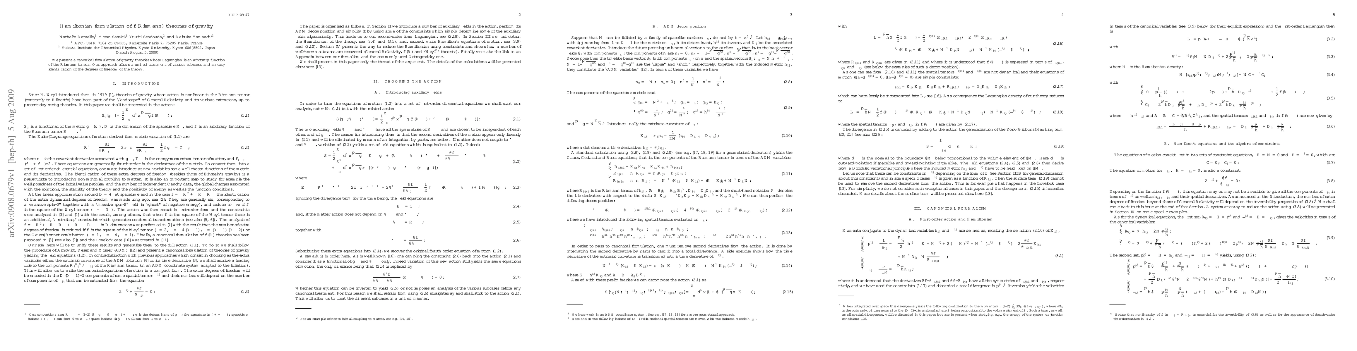 We present a canonical formulation of gravity theories whose Lagrangian is an arbitrary function of the Riemann tensor. Our approach allows a unified treatment of various subcases and an easy identification of the degrees of freedom of the theory.