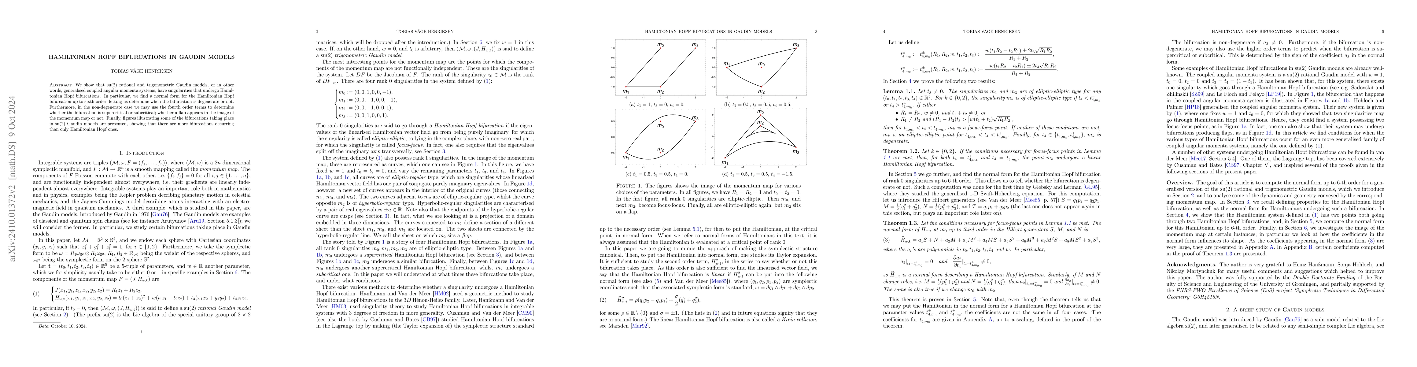The research investigates Hamiltonian Hopf bifurcations in su(2) Gaudin models, revealing normal forms for bifurcations up to sixth order and classifying their degeneracy. It also determines the bifurcation type using fourth-order terms and provides visual illustrations of additional bifurcations in su(2) Gaudin models.
