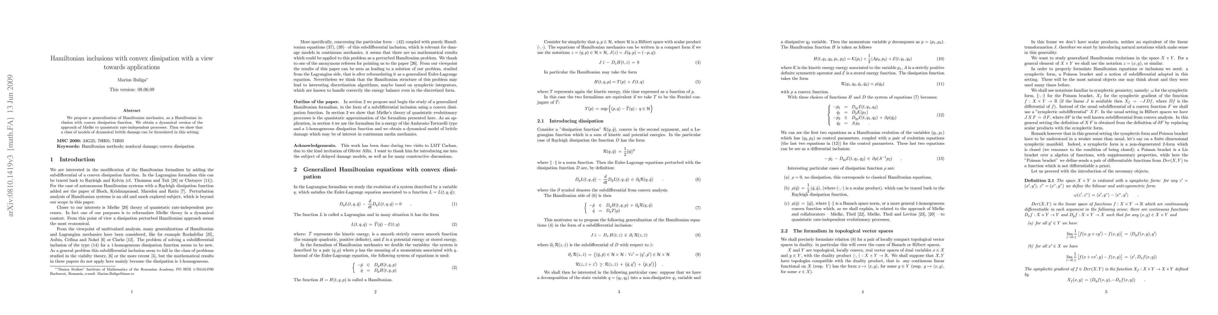 We propose a generalization of hamiltonian mechanics, as a hamiltonian inclusion with convex dissipation function. We obtain a dynamical version of the approach of Mielke to quasistatic rate-independent processes. Then we show that a class of models of dynamical brittle damage can be formulated in this setting.