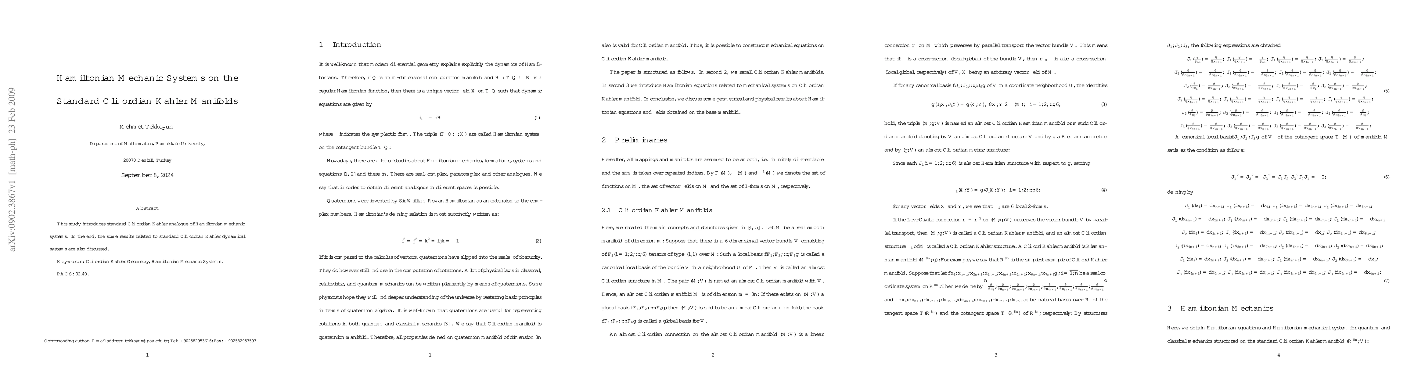 This paper explores Hamiltonian mechanics within the framework of standard Cliffordian Kähler manifolds, introducing a novel analogue of Hamiltonian systems and discussing related dynamical results for these systems.
