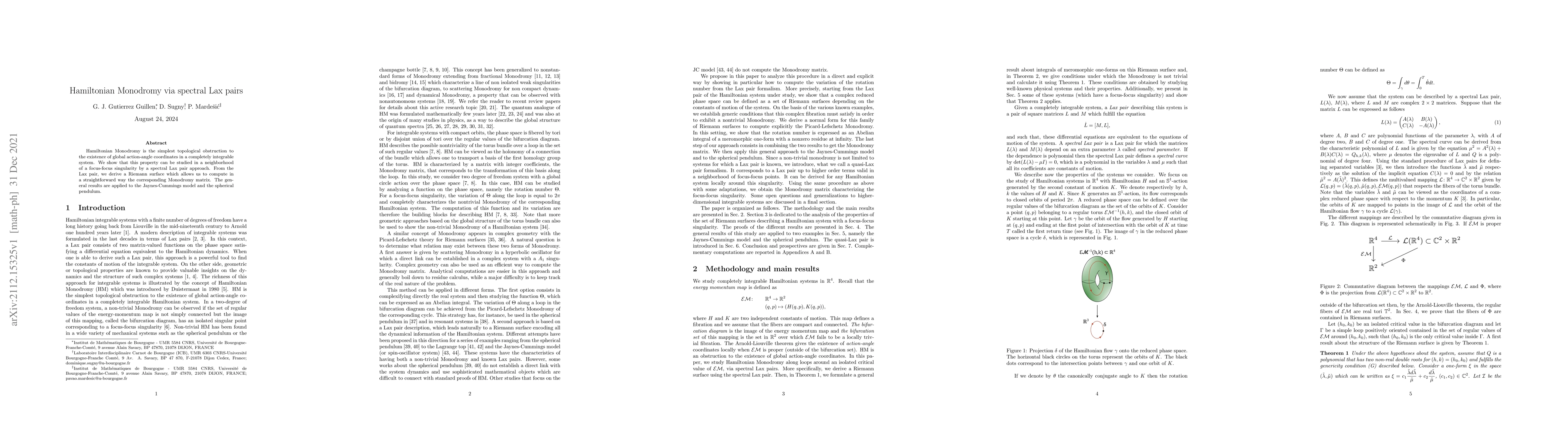 This paper uses a spectral Lax pair approach to study Hamiltonian Monodromy in completely integrable systems, providing a new method to compute the corresponding Monodromy matrix.