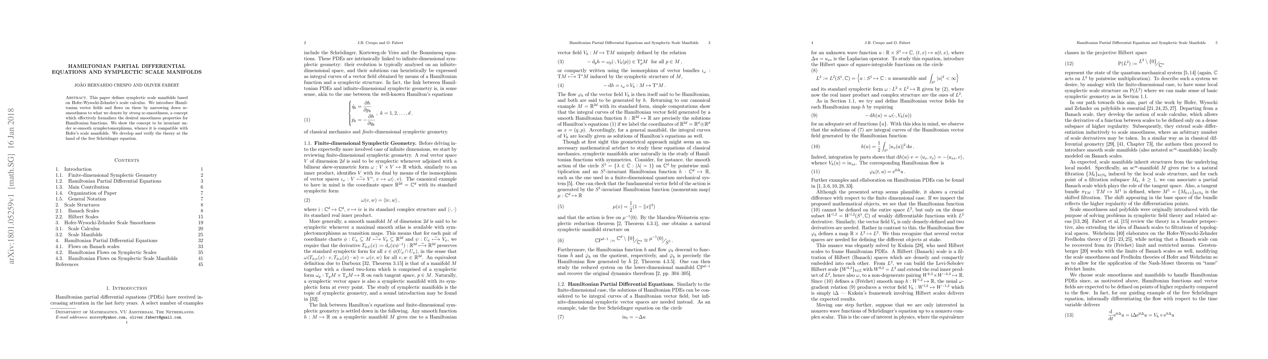 This paper defines symplectic scale manifolds based on Hofer-Wysocki-Zehnder's scale calculus. We introduce Hamiltonian vector fields and flows on these by narrowing down sc-smoothness to what we denote by strong sc-smoothness, a concept which effectively formalizes the desired smoothness properties for Hamiltonian functions. We show the concept to be invariant under sc-smooth symplectomorphisms, whence it is compatible with Hofer's scale manifolds. We develop and verify the theory at the hand of the free Schr\"odinger equation.