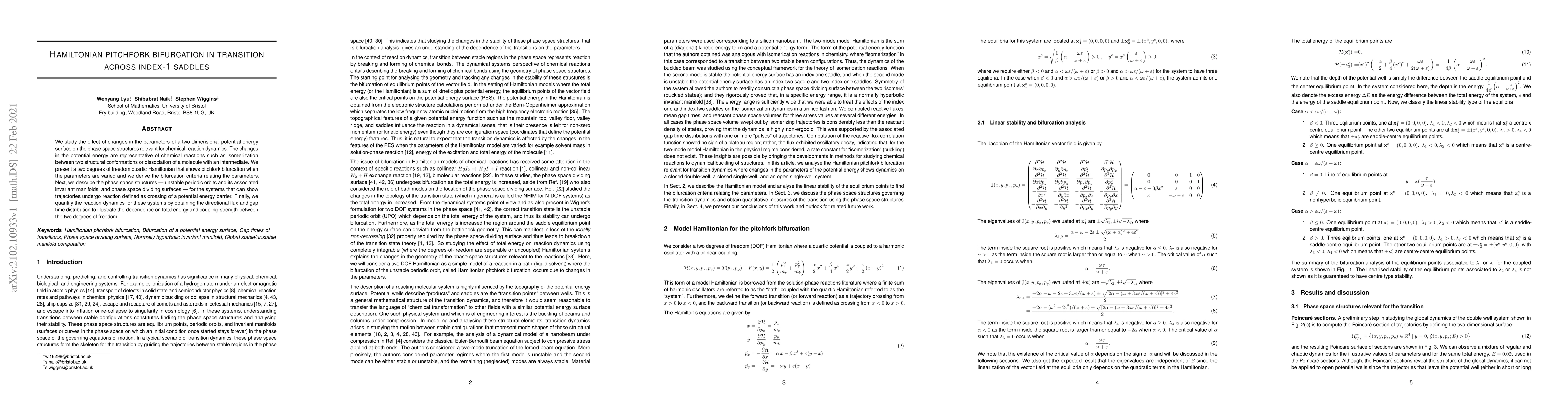 This paper investigates the Hamiltonian pitchfork bifurcation in a two-dimensional potential energy surface relevant to chemical reaction dynamics, using a quartic Hamiltonian model. It analyzes the bifurcation criteria, phase space structures, and quantifies reaction dynamics through directional flux and gap time distribution.