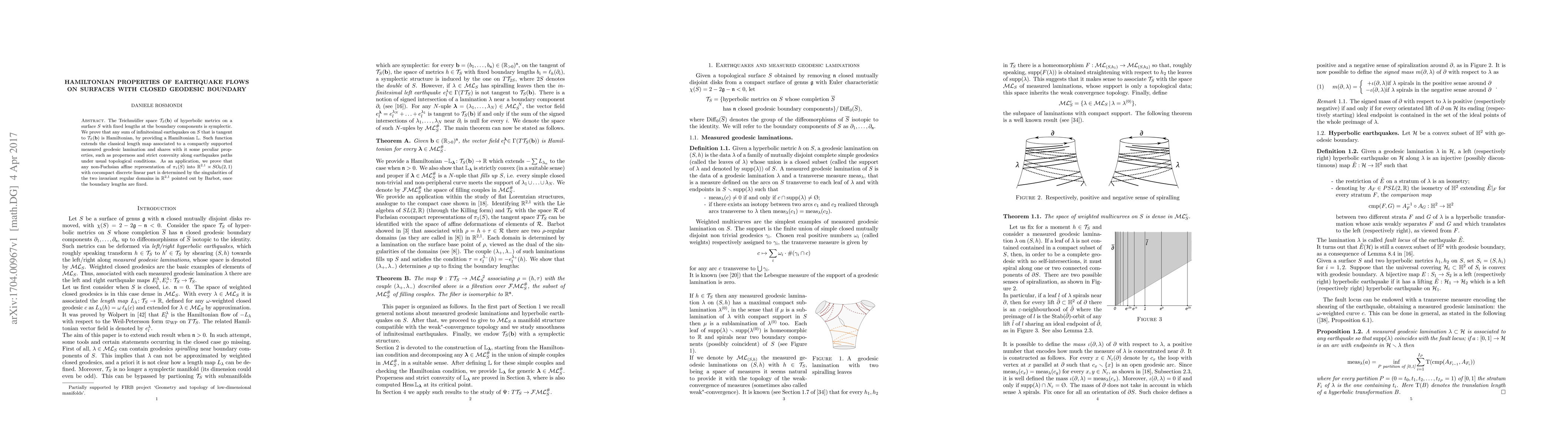 Researchers show that earthquakes on a surface with a closed geodesic boundary can be represented as a Hamiltonian function, revealing new properties about the relationship between earthquakes and the surface's geometry.