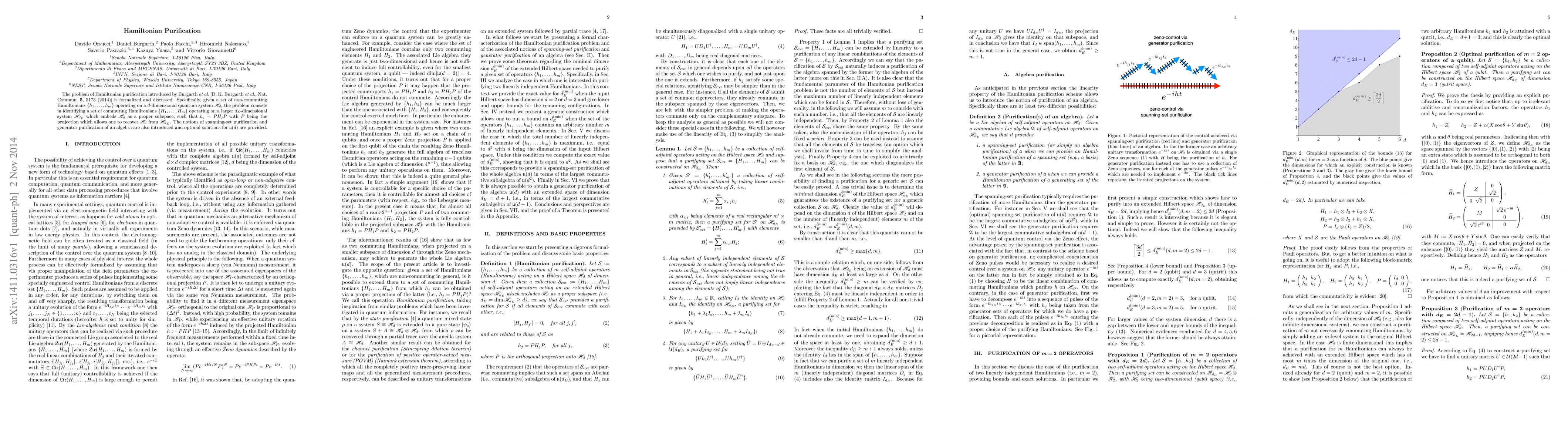 Researchers formalized the problem of Hamiltonian purification, which involves embedding a set of non-commuting Hamiltonians into a larger system while preserving their action. They introduced two types of purifications and provided optimal solutions for specific cases.