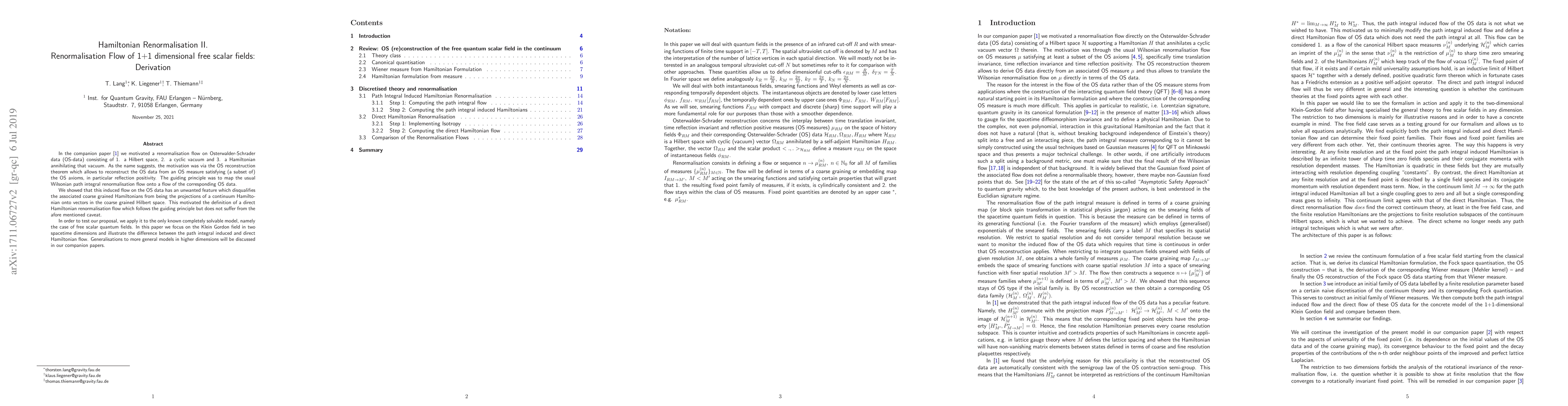 This paper proposes a direct Hamiltonian renormalisation flow for 1+1 dimensional free scalar fields, contrasting it with the path integral induced flow. It applies this new flow to the Klein-Gordon field, demonstrating its advantages over the traditional approach.