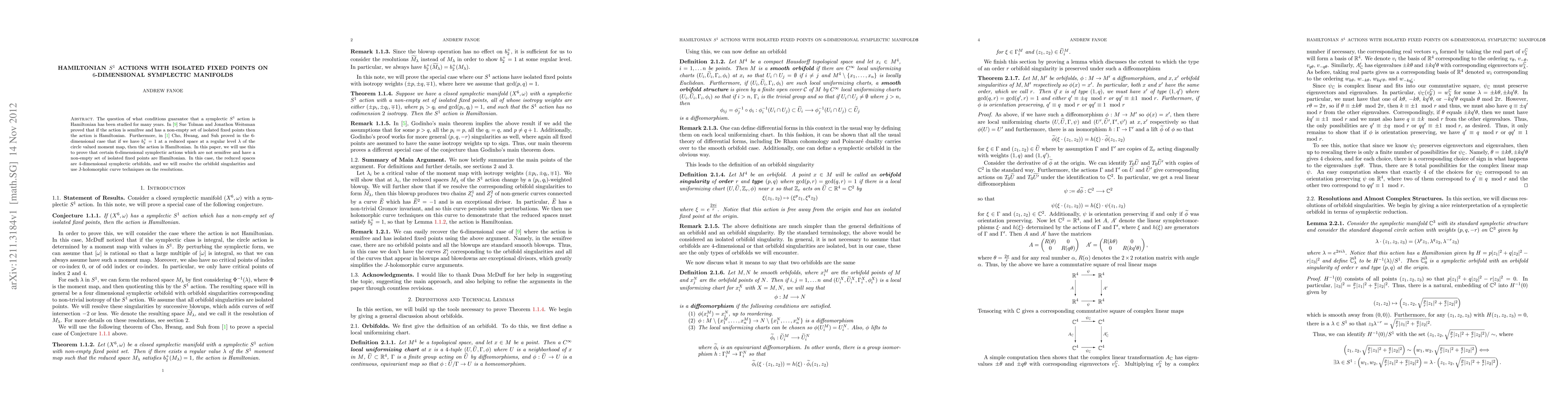 This paper investigates symplectic $S^1$ actions on 6-dimensional manifolds, proving that certain non-semifree actions with isolated fixed points are Hamiltonian by resolving orbifold singularities and employing J-holomorphic curve techniques.