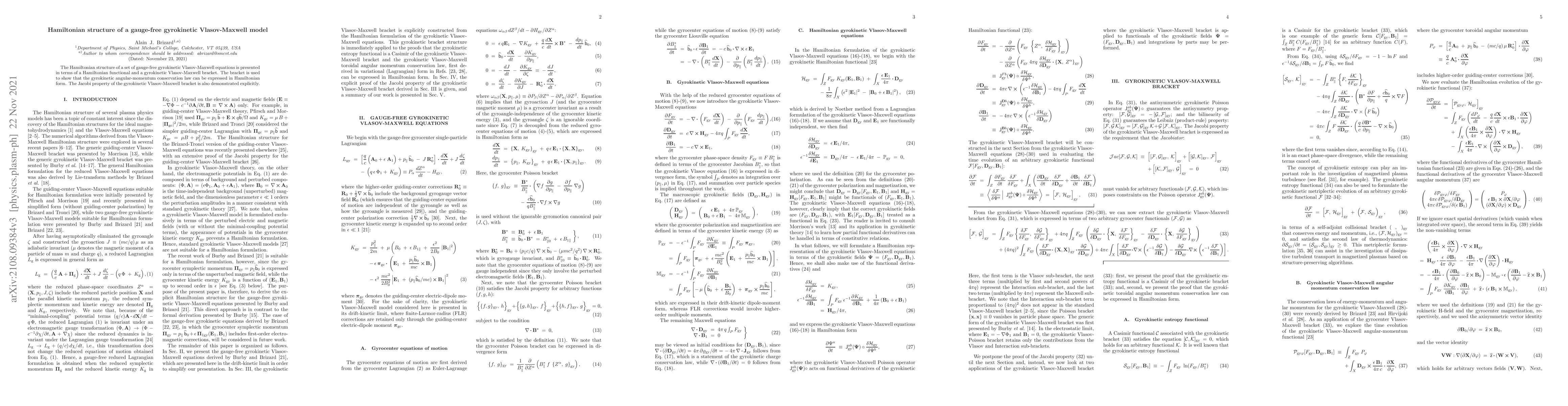 The Hamiltonian structure of the gauge-free gyrokinetic Vlasov-Maxwell equations is presented in terms of a Hamiltonian functional and a gyrokinetic Vlasov-Maxwell bracket. The bracket is used to show that the gyrokinetic angular-momentum conservation law can also be expressed in Hamiltonian form. The Jacobi property of the gyrokinetic Vlasov-Maxwell bracket is also demonstrated explicitly.