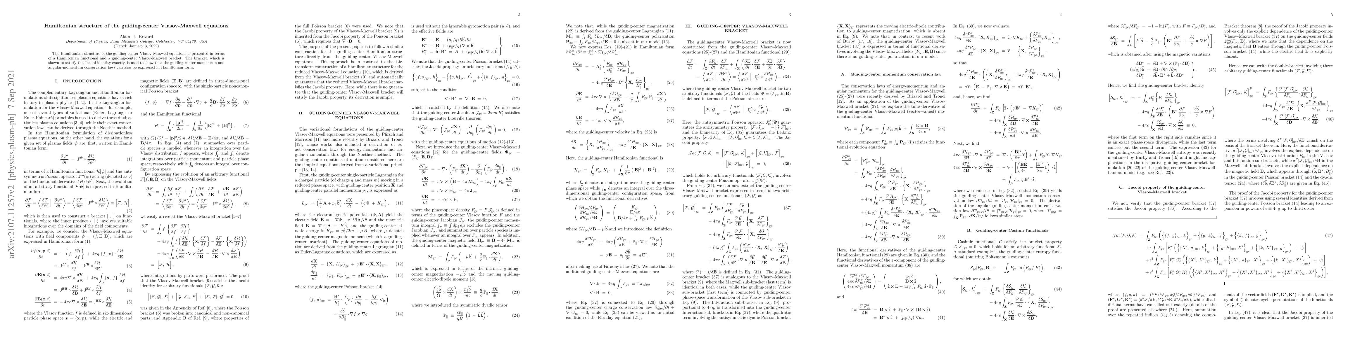 This paper elucidates the Hamiltonian framework for guiding-center Vlasov-Maxwell equations, introducing a Hamiltonian functional and a guiding-center Vlasov-Maxwell bracket that upholds the Jacobi identity, facilitating Hamiltonian expressions for momentum and angular-momentum conservation laws.
