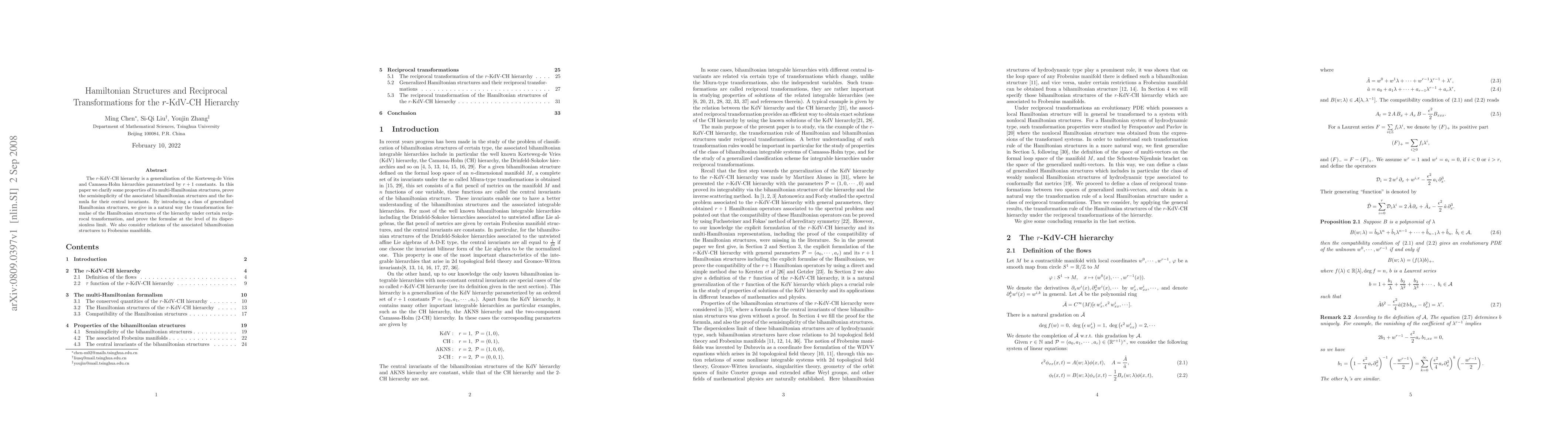 This paper investigates the $r$-KdV-CH hierarchy, exploring its multi-Hamiltonian structures and proving the semisimplicity of its bihamiltonian structures along with the formula for their central invariants. It introduces generalized Hamiltonian structures to derive transformation formulae under reciprocal transformations and examines their relations to Frobenius manifolds.