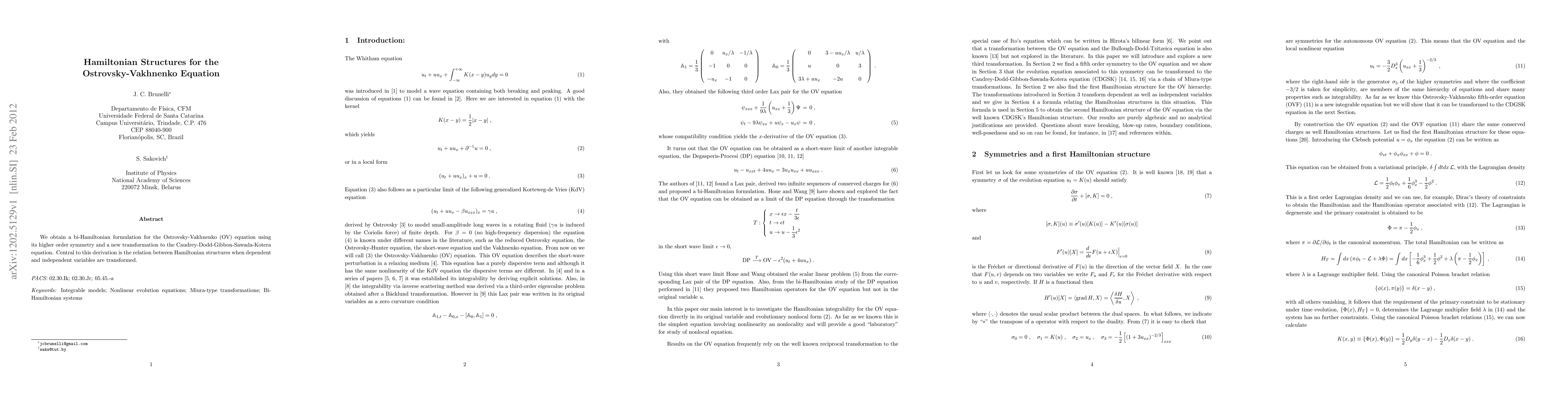 This paper develops a bi-Hamiltonian framework for the Ostrovsky-Vakhnenko equation, leveraging its higher-order symmetry and a transformation to the Caudrey-Dodd-Gibbon-Sawada-Kotera equation, focusing on the relationship between Hamiltonian structures under variable transformations.