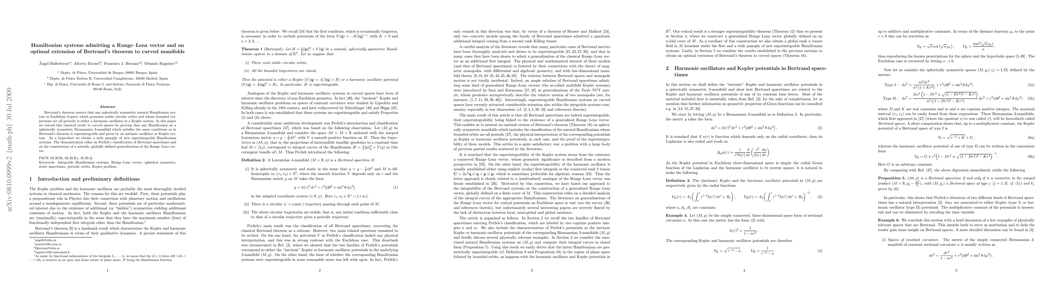 Bertrand's theorem asserts that any spherically symmetric natural Hamiltonian system in Euclidean 3-space which possesses stable circular orbits and whose bounded trajectories are all periodic is either a harmonic oscillator or a Kepler system. In this paper we extend this classical result to curved spaces by proving that any Hamiltonian on a spherically symmetric Riemannian 3-manifold which satisfies the same conditions as in Bertrand's theorem is superintegrable and given by an intrinsic oscillator or Kepler system. As a byproduct we obtain a wide panoply of new superintegrable Hamiltonian systems. The demonstration relies on Perlick's classification of Bertrand spacetimes and on the construction of a suitable, globally defined generalization of the Runge-Lenz vector.