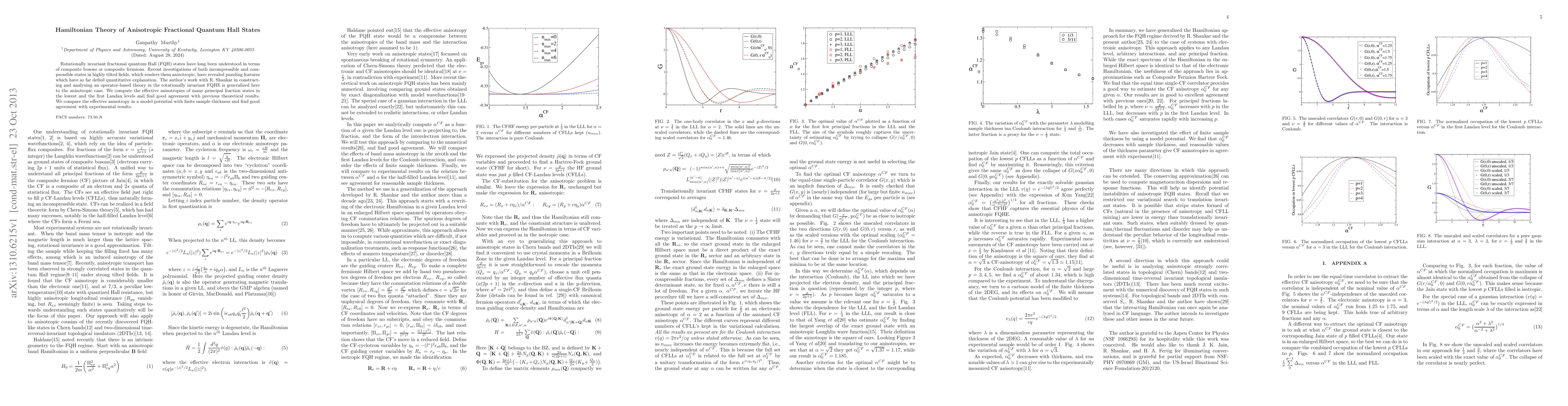 The paper extends an operator-based Hamiltonian theory to anisotropic fractional quantum Hall states, computing effective anisotropies that match theoretical and experimental results, providing new insights into the behavior of these complex quantum systems.