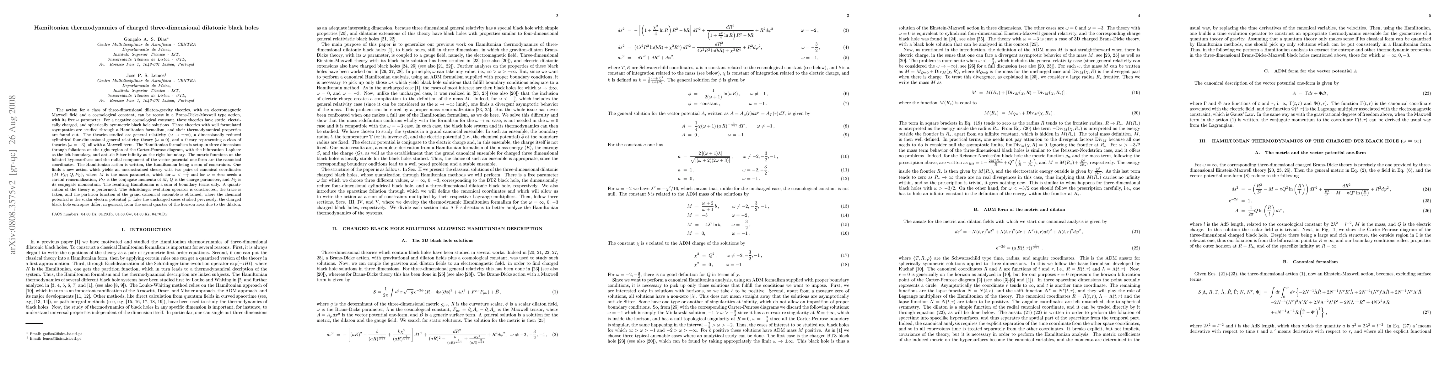 The action for a class of three-dimensional dilaton-gravity theories, with an electromagnetic Maxwell field and a cosmological constant, can be recast in a Brans-Dicke-Maxwell type action, with its free $\omega$ parameter. For a negative cosmological constant, these theories have static, electrically charged, and spherically symmetric black hole solutions. Those theories with well formulated asymptotics are studied through a Hamiltonian formalism, and their thermodynamical properties are found. The theories studied are general relativity, a dimensionally reduced cylindrical four-dimensional general relativity theory, and a theory representing a class of theories, all with a Maxwell term. The Hamiltonian formalism is setup in three dimensions through foliations on the right region of the Carter-Penrose diagram, with the bifurcation 1-sphere as the left boundary, and anti-de Sitter infinity as the right one. The metric functions on the hypersurfaces and the radial component of the vector potential one-form are the canonical coordinates. The Hamiltonian action is written, the Hamiltonian being a sum of constraints. One finds a new action which yields an unconstrained theory with two pairs of canonical coordinates ${M,P_M; Q,P_Q}$, where $M$ is the mass parameter, which needs renormalization, $P_M$ its conjugate momenta, $Q$ is the charge parameter, and $P_Q$ its conjugate momentum. The resulting Hamiltonian is a sum of boundary terms only. A quantization of the theory is performed. The Schr\"odinger evolution operator is constructed, the trace is taken, and the partition function of the grand canonical ensemble is obtained, the chemical potential being the electric potential. The charged black hole entropies differ, in general, from the usual quarter of the horizon area due to the dilaton.
