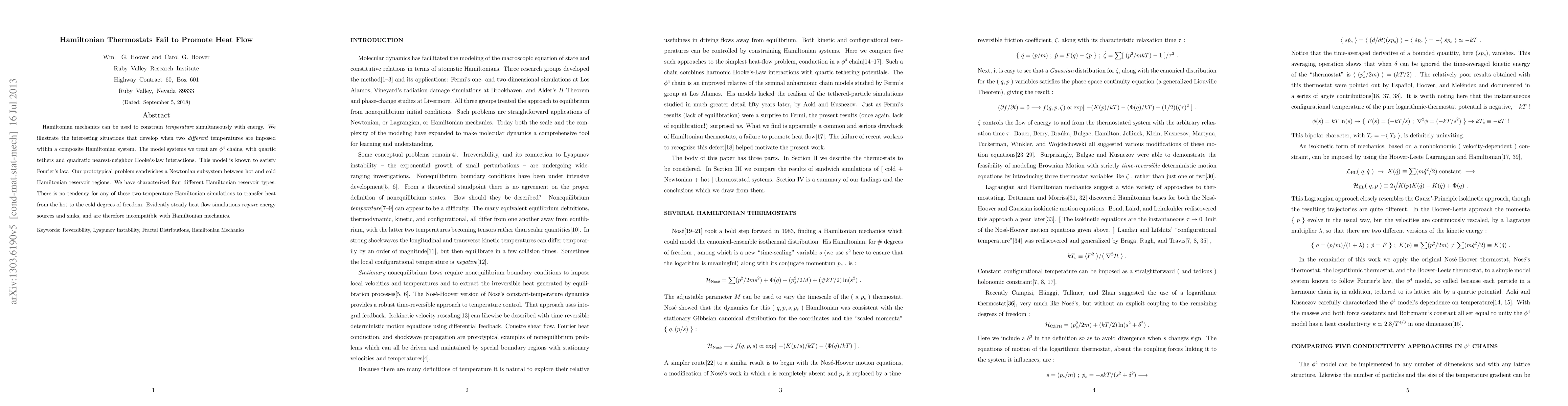 This paper demonstrates that Hamiltonian thermostats fail to promote heat flow between different temperatures in composite systems, using "phi-4" chains as a model. Despite satisfying Fourier's law, the simulations show no heat transfer, indicating that steady heat flow is incompatible with Hamiltonian mechanics, which lacks inherent energy sources and sinks.