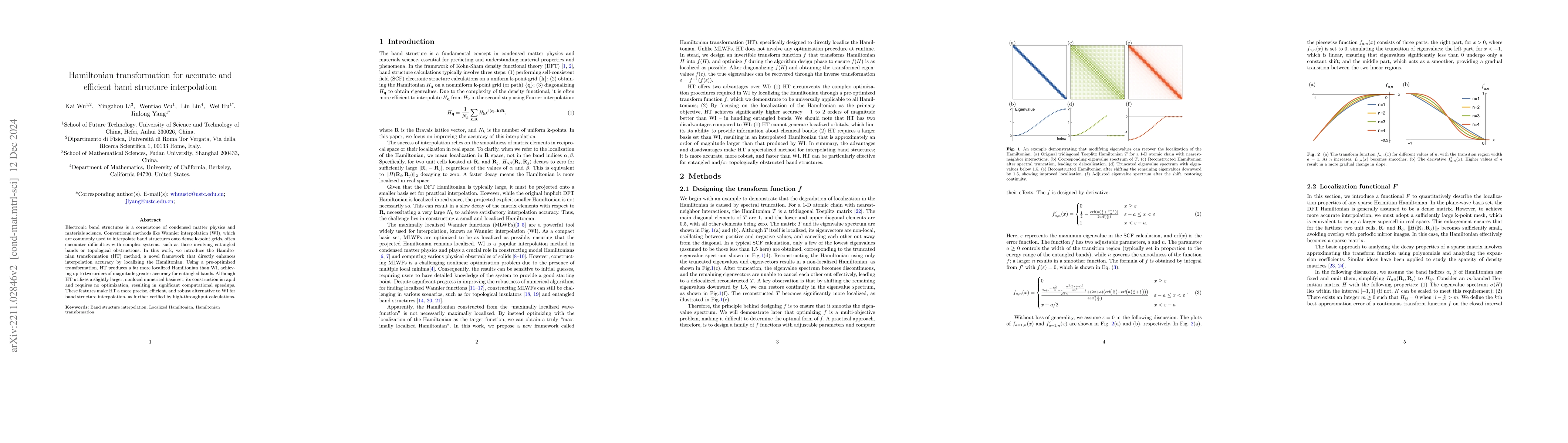 This paper introduces a novel Hamiltonian transformation (HT) method for accurate, parameter-free band structure calculations in DFT and post-DFT, outperforming the conventional Wannier interpolation (WI) by using an eigenvalue transformation and a non-iterative basis set change. HT's computational cost scales as $\mathcal{O}(N_e^3N_k\log N_k)$.
