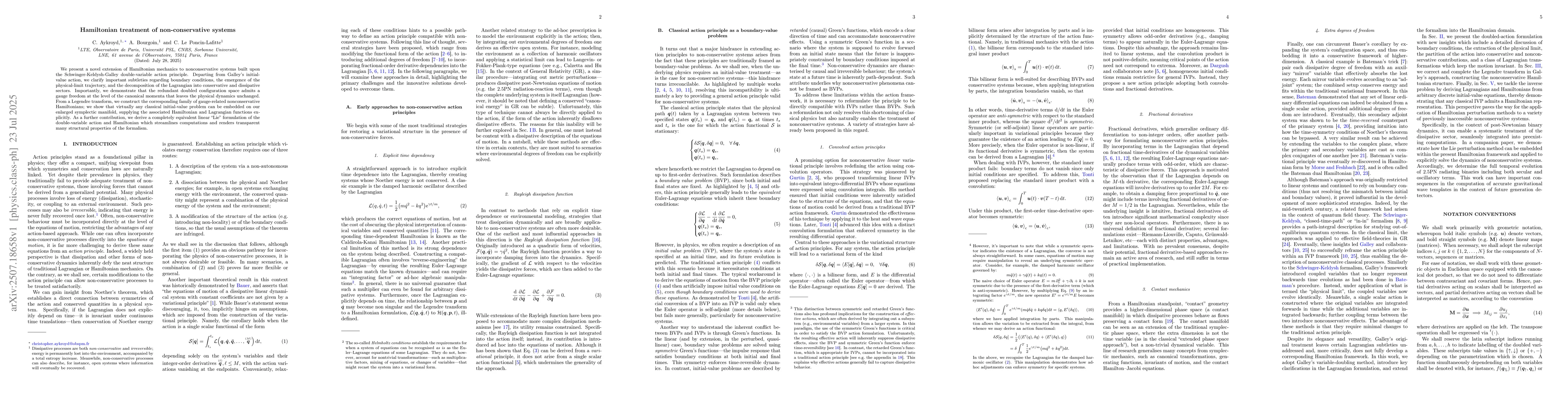 We present a novel extension of Hamiltonian mechanics to nonconservative systems built upon the Schwinger-Keldysh-Galley double-variable action principle. Departing from Galley's initial-value action, we clarify important subtleties regarding boundary conditions, the emergence of the physical-limit trajectory, and the decomposition of the Lagrangian into conservative and dissipative sectors. Importantly, we demonstrate that the redundant doubled configuration space admits a gauge freedom at the level of the canonical momenta that leaves the physical dynamics unchanged. From a Legendre transform, we construct the corresponding family of gauge-related nonconservative Hamiltonians; we show that virtually any classical initial-value problem can be embedded on our enlarged symplectic manifold, supplying the associated Hamiltonian and Lagrangian functions explicitly. As a further contribution, we derive a completely equivalent linear ``Lie'' formulation of the double-variable action and Hamiltonian which streamlines computations and renders transparent many structural properties of the formalism.