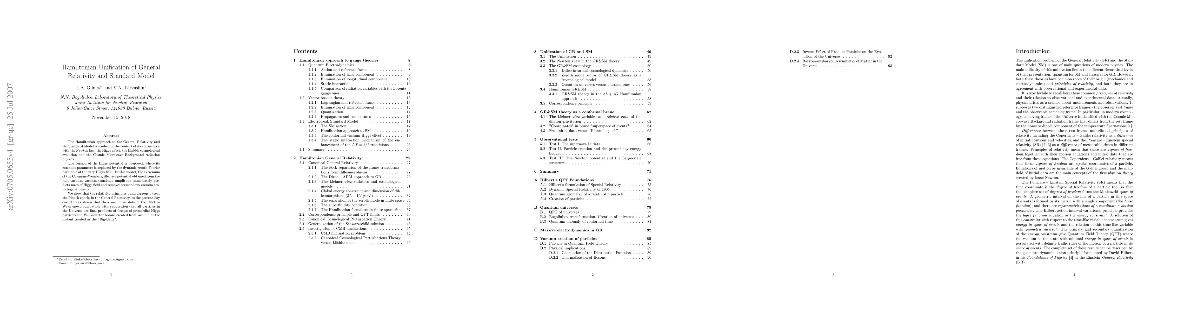 The Hamiltonian approach to the General Relativity and the Standard Model is studied in the context of its consistency with the Newton law, the Higgs effect, the Hubble cosmological evolution and the Cosmic Microwave Background radiation physics. The version of the Higgs potential is proposed, where its constant parameter is replaced by the dynamic zeroth Fourier harmonic of the very Higgs field. In this model, the extremum of the Coleman--Weinberg effective potential obtained from the unit vacuum--vacuum transition amplitude immediately predicts mass of Higgs field and removes tremendous vacuum cosmological density. We show that the relativity principles unambiguously treat the Planck epoch, in the General Relativity, as the present-day one. It was shown that there are initial data of the Electro-Weak epoch compatible with supposition that all particles in the Universe are final products of decays of primordial Higgs particles and W-, Z-vector bosons created from vacuum at the instant treated as the "Big-Bang".