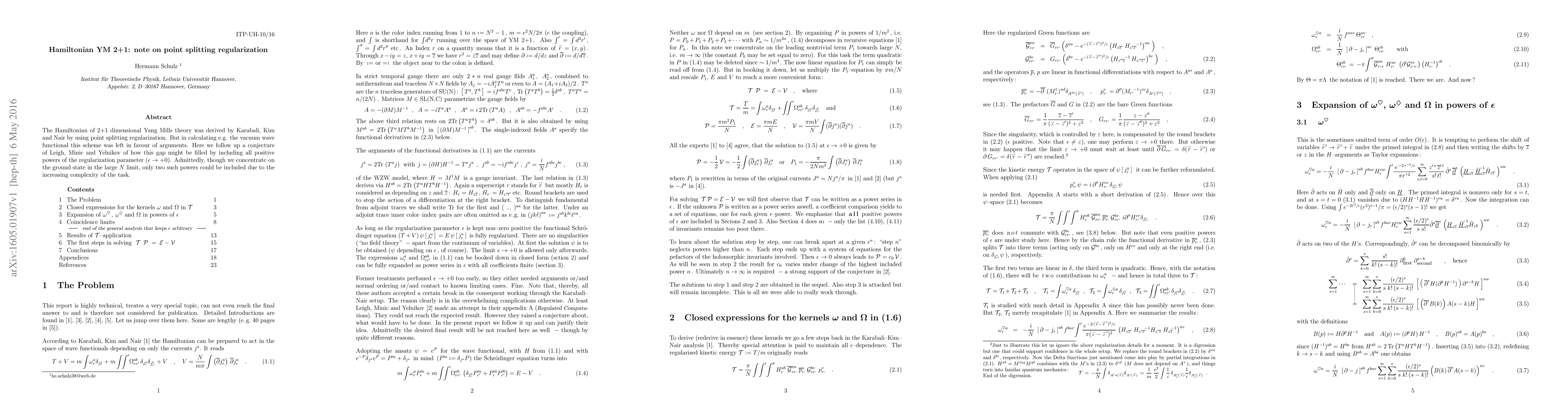 Researchers investigate a method to fill a gap in understanding 2+1 dimensional Yang Mills theory using point splitting regularization, exploring the inclusion of positive powers of the regularization parameter to calculate vacuum wave functionals.