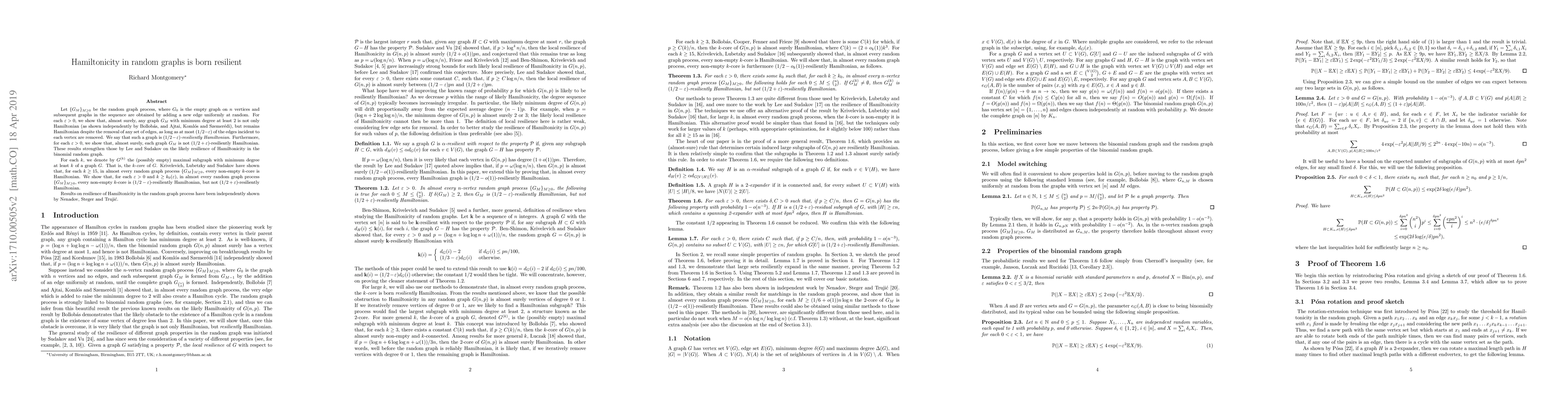 The paper introduces and proves properties of (1/2-ε)-resilient Hamiltonicity in random graphs, extending previous work on Hamiltonicity and resilience.
