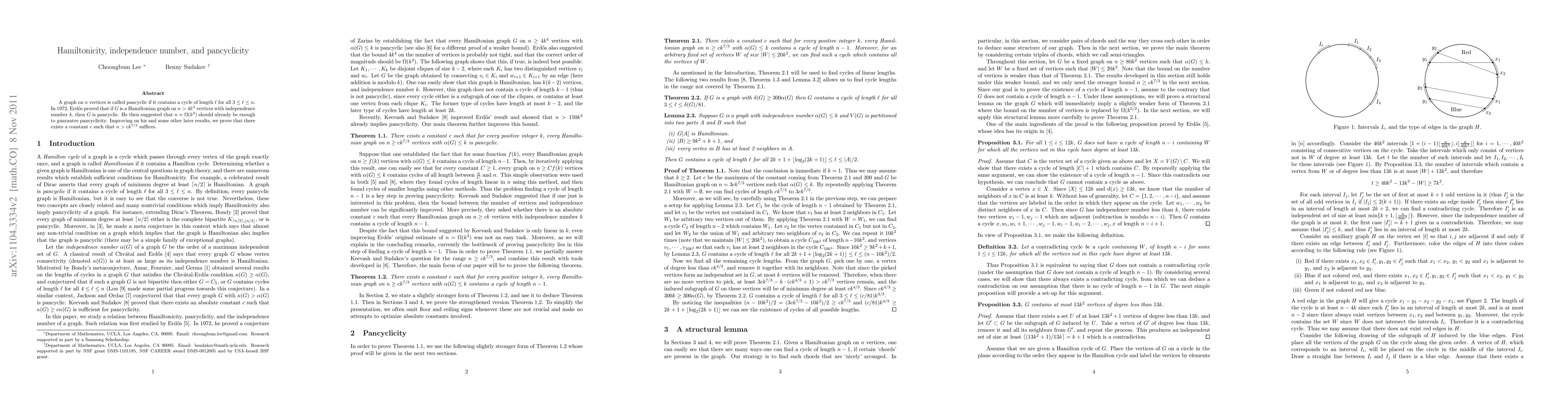 This paper proves that a Hamiltonian graph with independence number k and more than ck^{7/3} vertices is guaranteed to be pancyclic, improving upon earlier results that required significantly more vertices for the same guarantee. This finding refines the understanding of the relationship between Hamiltonicity, independence number, and pancyclicity in graphs.