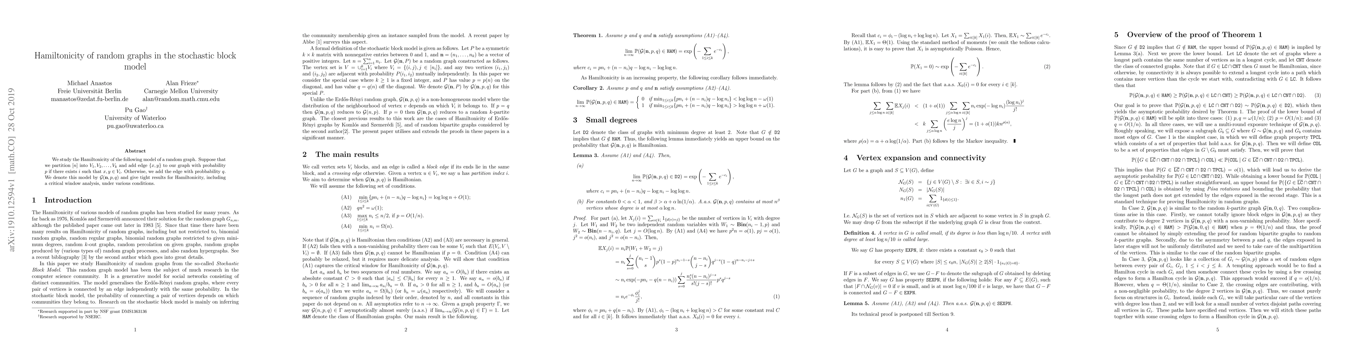 We study the Hamiltonicity of the following model of a random graph. Suppose that we partition [n] into V_1,V_2,...,V_k and add edge {x,y} to our graph with probability p if there exists i such that x,y\in V_i. Otherwise, we add the edge with probbability q. We denote this model by G(n, p,q) and give tight results for Hamiltonicity, including a critical window analysis, under various conditions.