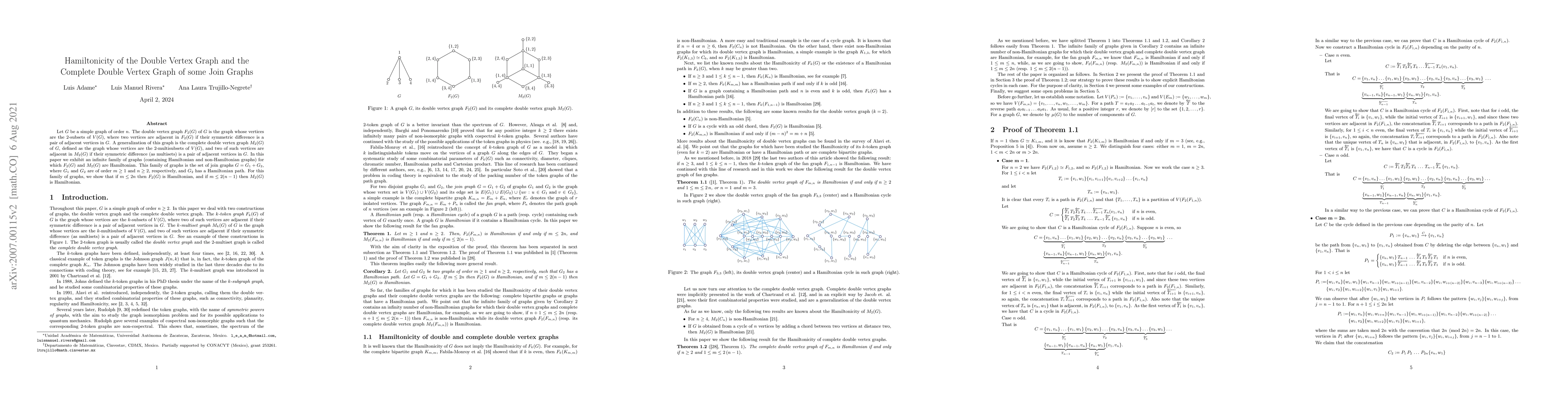 Let $G$ be a simple graph of order $n$. The double vertex graph $F_2(G)$ of $G$ is the graph whose vertices are the $2$-subsets of $V(G)$, where two vertices are adjacent in $F_2(G)$ if their symmetric difference is a pair of adjacent vertices in $G$. A generalization of this graph is the complete double vertex graph $M_2(G)$ of $G$, defined as the graph whose vertices are the $2$-multisubsets of $V(G)$, and two of such vertices are adjacent in $M_2(G)$ if their symmetric difference (as multisets) is a pair of adjacent vertices in $G$. In this paper we exhibit an infinite family of graphs (containing Hamiltonian and non-Hamiltonian graphs) for which $F_2(G)$ and $M_2(G)$ are Hamiltonian. This family of graphs is the set of join graphs $G=G_1 + G_2$, where $G_1$ and $G_2$ are of order $m\geq 1$ and $n\geq 2$, respectively, and $G_2$ has a Hamiltonian path. For this family of graphs, we show that if $m\leq 2n$ then $F_2(G)$ is Hamiltonian, and if $m\leq 2(n-1)$ then $M_2(G)$ is Hamiltonian.