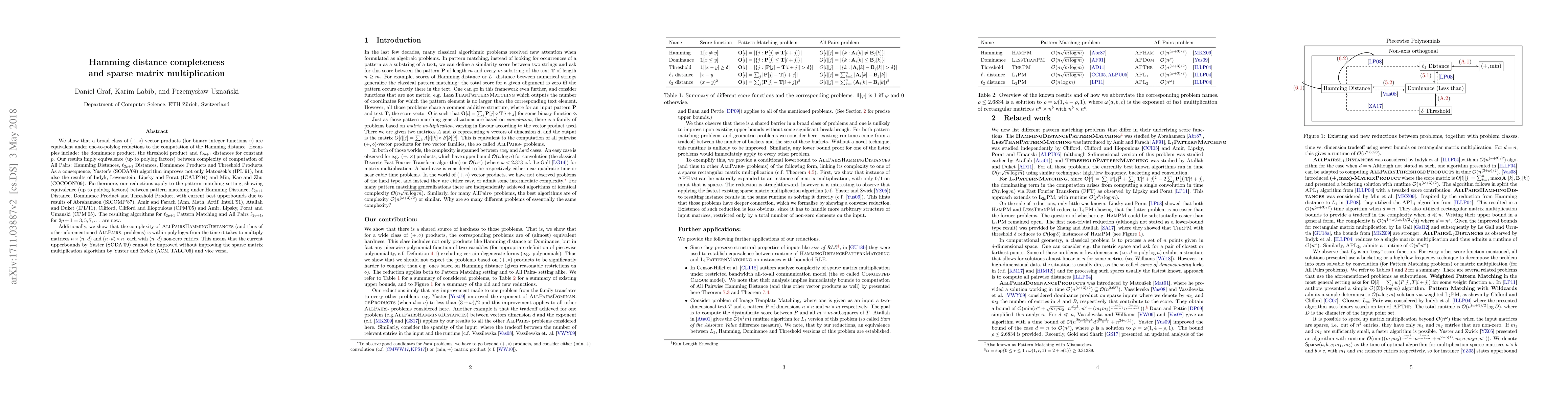 We show that a broad class of $(+,\diamond)$ vector products (for binary integer functions $\diamond$) are equivalent under one-to-polylog reductions to the computation of the Hamming distance. Examples include: the dominance product, the threshold product and $\ell_{2p+1}$ distances for constant $p$. Our results imply equivalence (up to polylog factors) between complexity of computation of All Pairs: Hamming Distances, $\ell_{2p+1}$ Distances, Dominance Products and Threshold Products. As a consequence, Yuster's~(SODA'09) algorithm improves not only Matou\v{s}ek's (IPL'91), but also the results of Indyk, Lewenstein, Lipsky and Porat (ICALP'04) and Min, Kao and Zhu (COCOON'09). Furthermore, our reductions apply to the pattern matching setting, showing equivalence (up to polylog factors) between pattern matching under Hamming Distance, $\ell_{2p+1}$ Distance, Dominance Product and Threshold Product, with current best upperbounds due to results of Abrahamson (SICOMP'87), Amir and Farach (Ann.~Math.~Artif.~Intell.'91), Atallah and Duket (IPL'11), Clifford, Clifford and Iliopoulous (CPM'05) and Amir, Lipsky, Porat and Umanski (CPM'05). The resulting algorithms for $\ell_{2p+1}$ Pattern Matching and All Pairs $\ell_{2p+1}$, for $2p+1 = 3,5,7,\dots$ are new. Additionally, we show that the complexity of AllPairsHammingDistances (and thus of other aforementioned AllPairs- problems) is within polylog from the time it takes to multiply matrices $n \times (n\cdot d)$ and $(n\cdot d) \times n$, each with $(n\cdot d)$ non-zero entries. This means that the current upperbounds by Yuster (SODA'09) cannot be improved without improving the sparse matrix multiplication algorithm by Yuster and Zwick~(ACM TALG'05) and vice versa.