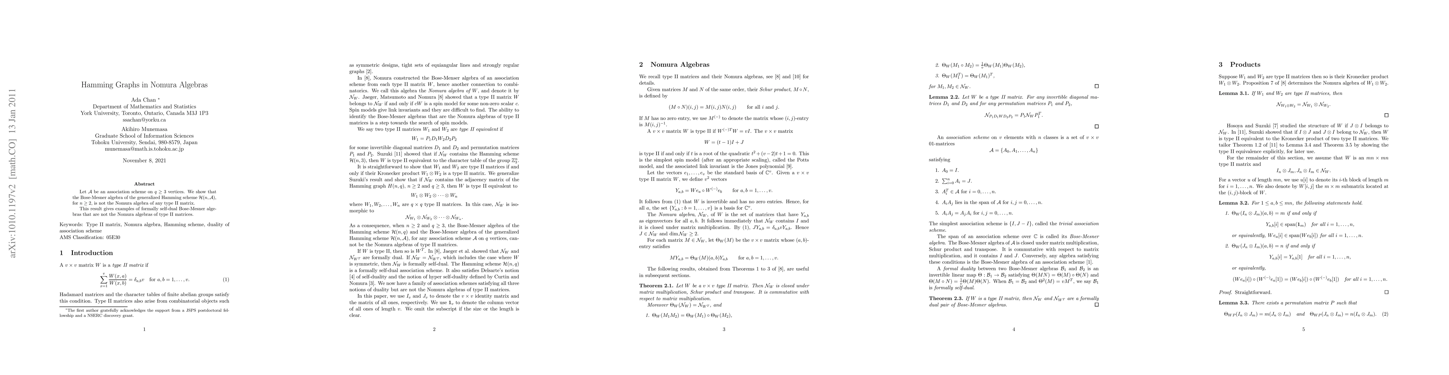 Let A be an association scheme on q\geq 3 vertices. We show that the Bose-Mesner algebra of the generalized Hamming scheme H(n,A), for n\geq 2, is not the Nomura algebra of a type II matrix. This result gives examples of formally self-dual Bose-Mesner algebras that are not the Nomura algebras of type II matrices.
