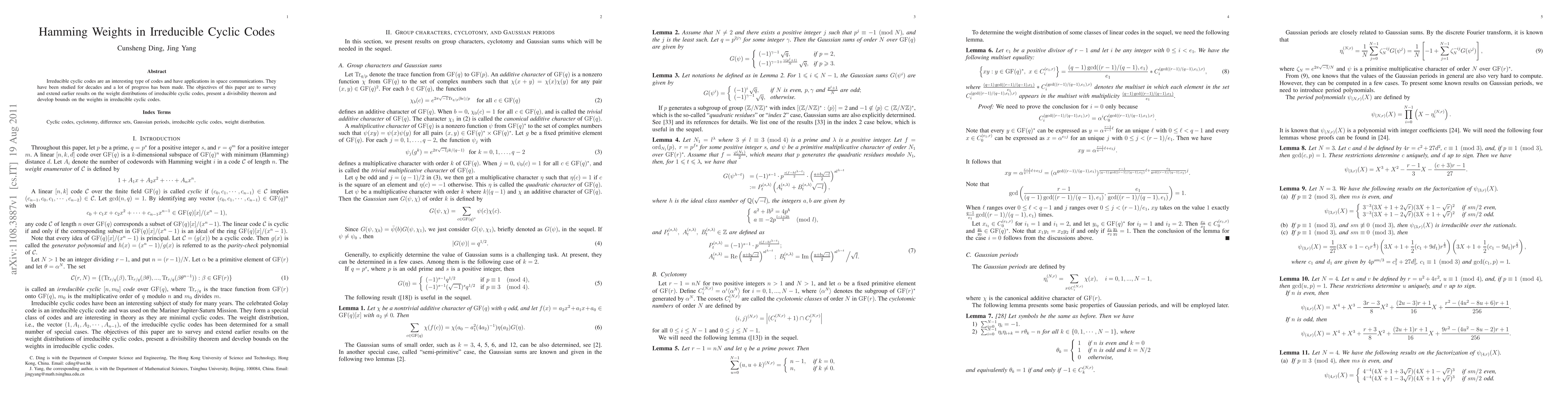 This paper surveys and extends previous findings on the weight distributions of irreducible cyclic codes, introduces a new divisibility theorem, and establishes bounds on the weights within these codes, contributing to their applications in space communications.